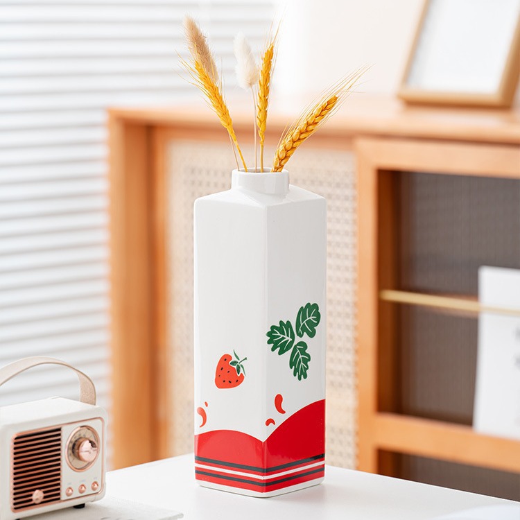 亚马逊ins草莓花瓶客厅插干花家居软装饰品餐桌摆件鲜花水培花器