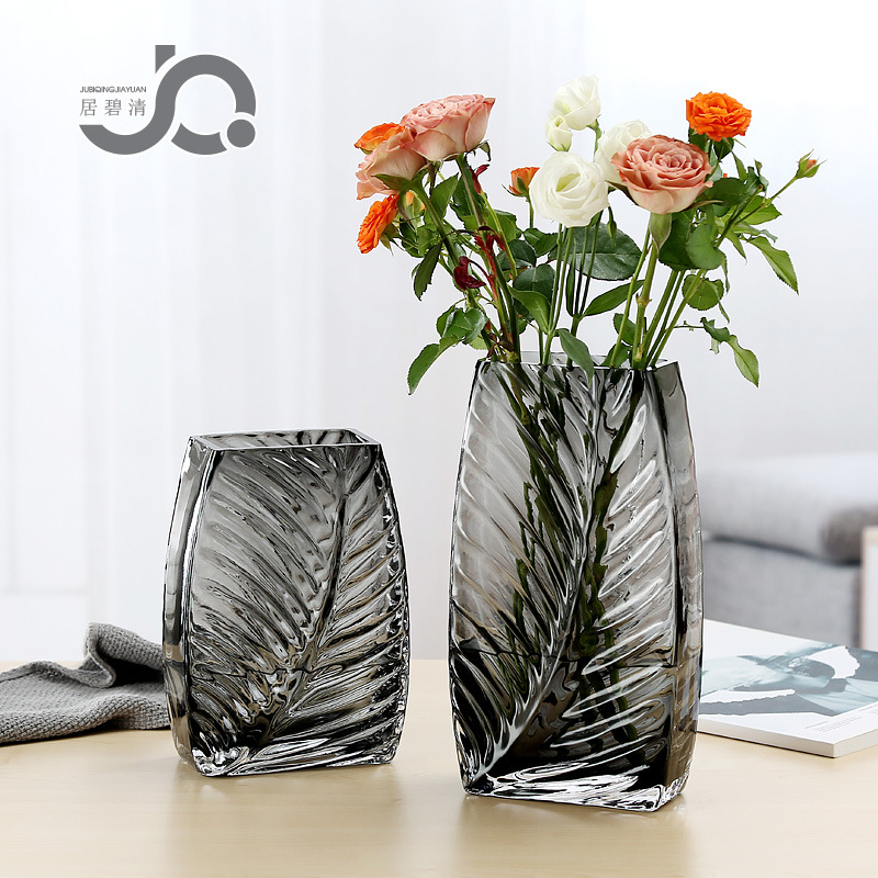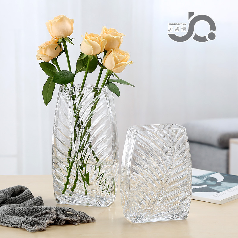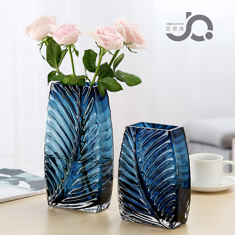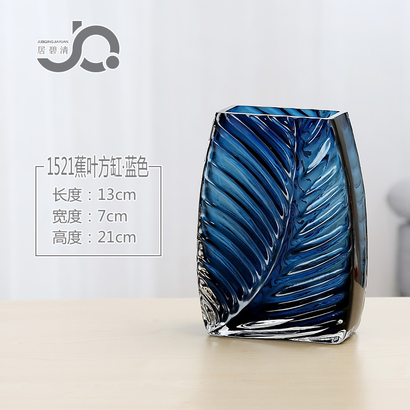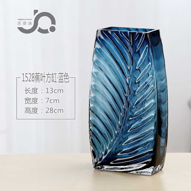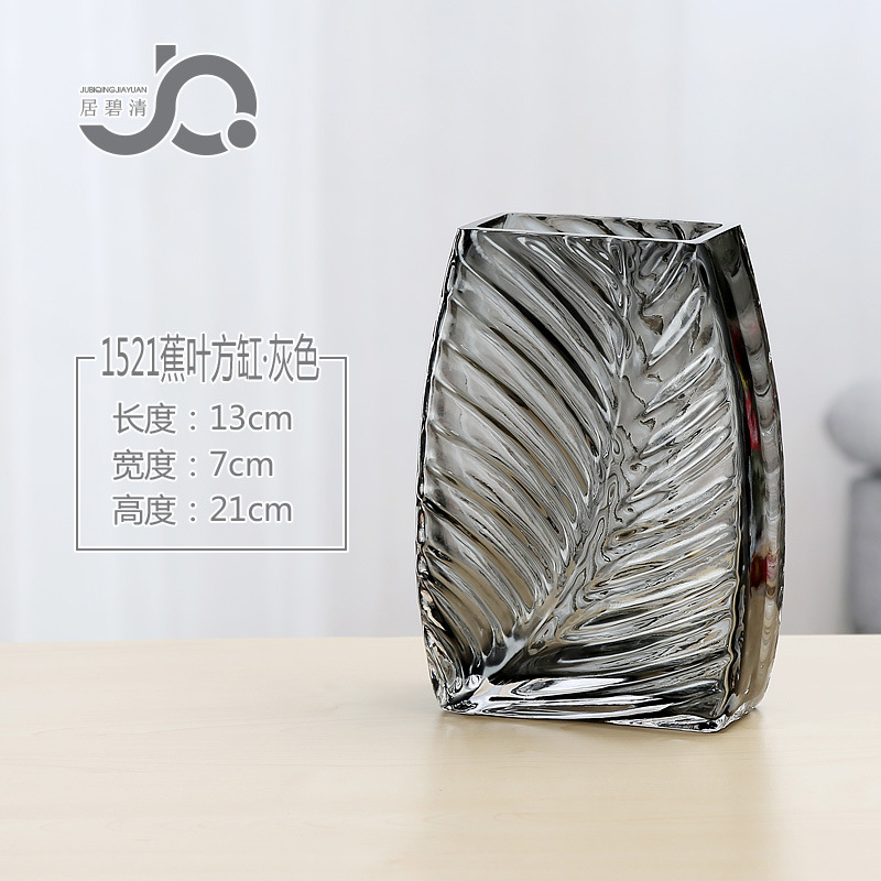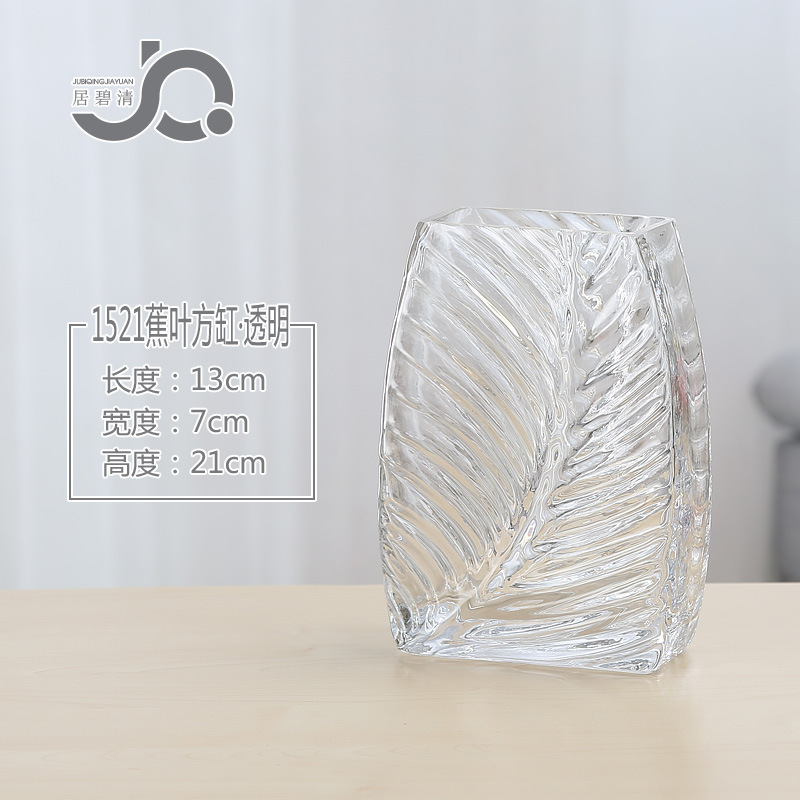 现代简约蕉叶艺术玻璃花瓶百合玫瑰桌面客厅水培富贵竹书桌餐桌