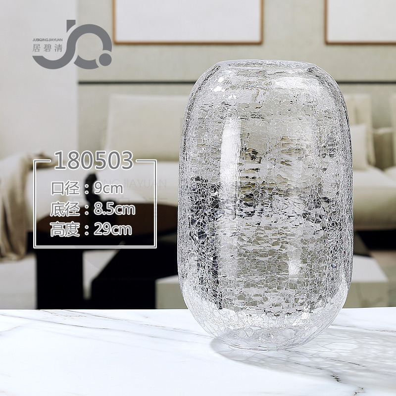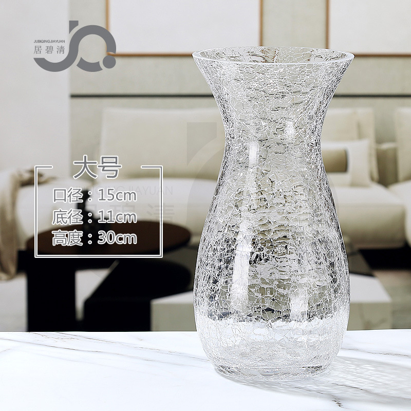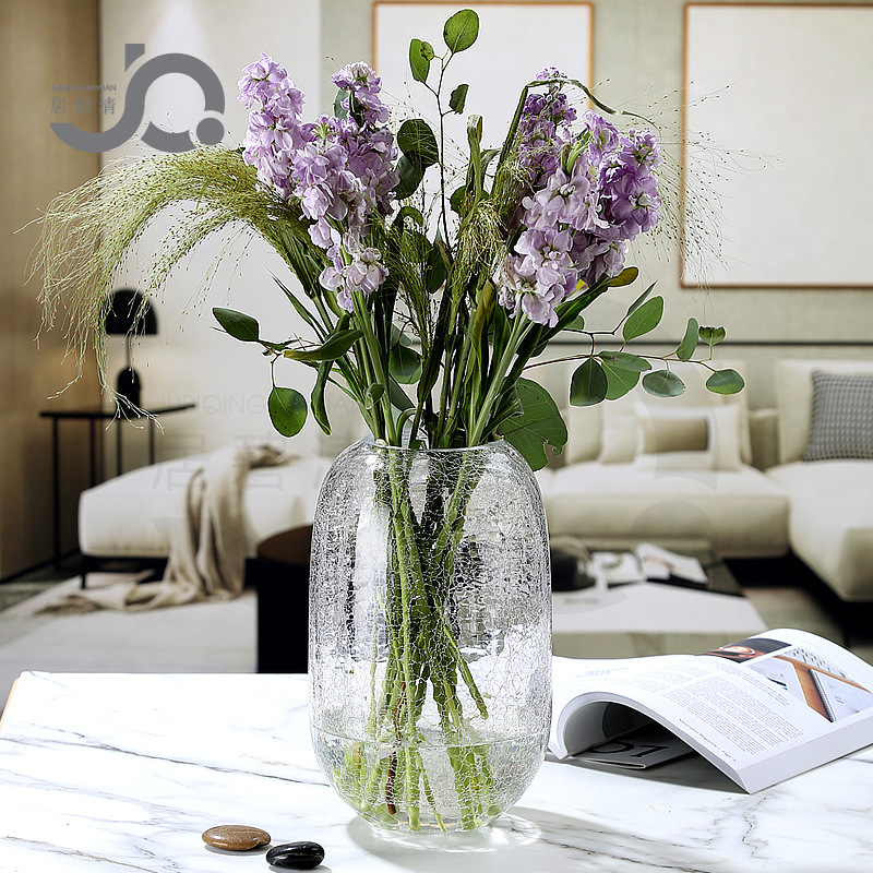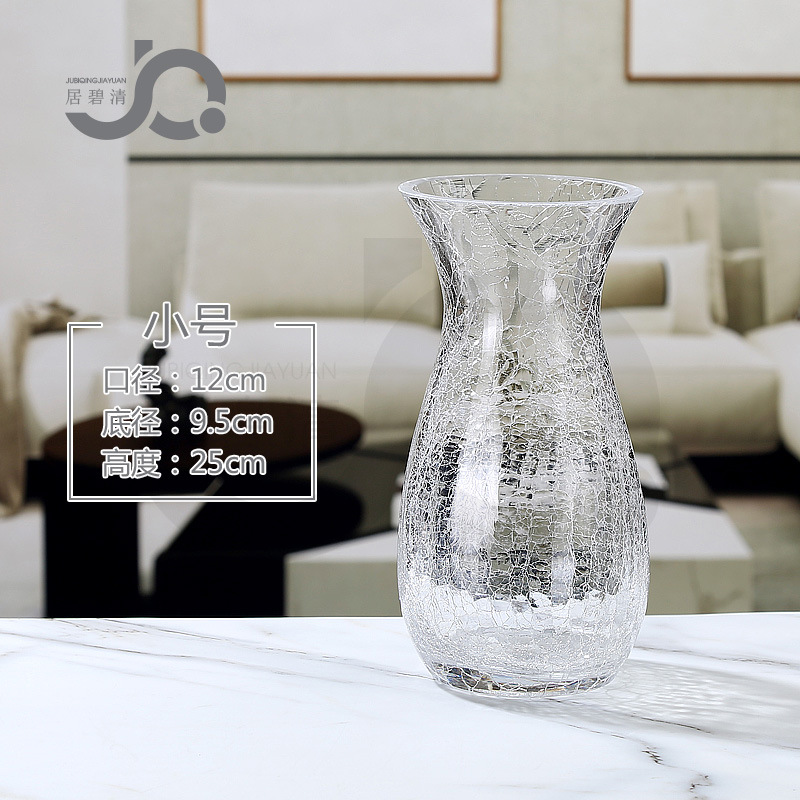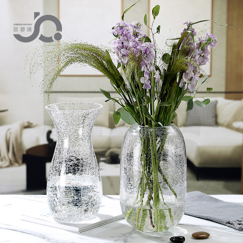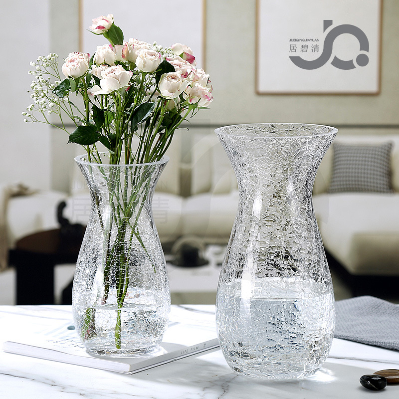 现代简约透明玻璃水培富贵竹客厅百合玫瑰干花仿真花冰纹花瓶摆件