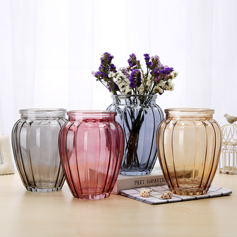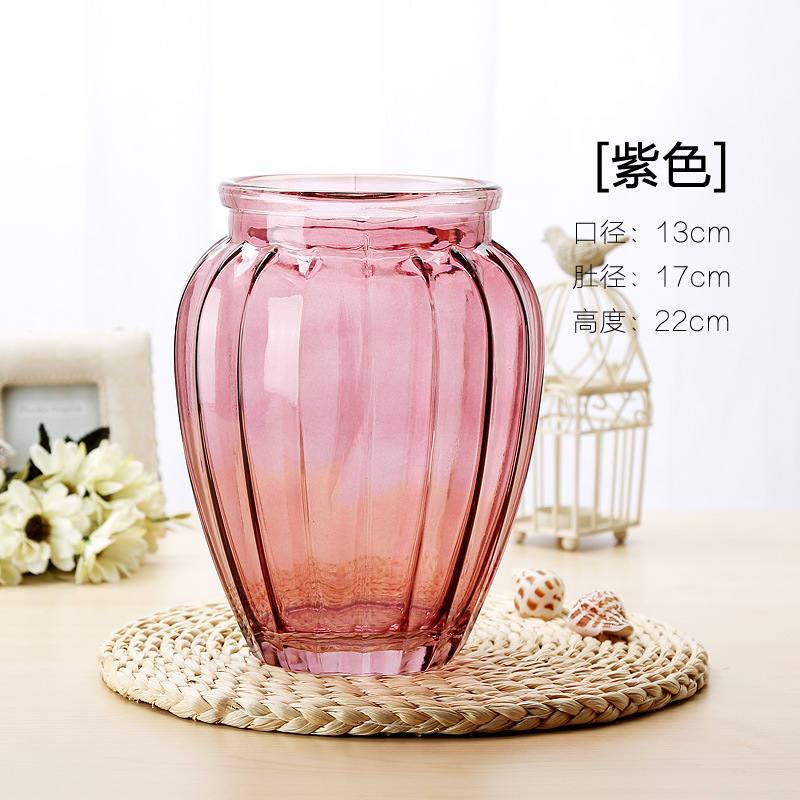 彩色玻璃花瓶创意复古清新欧式桌面客厅插干花鲜花富贵竹家居装饰