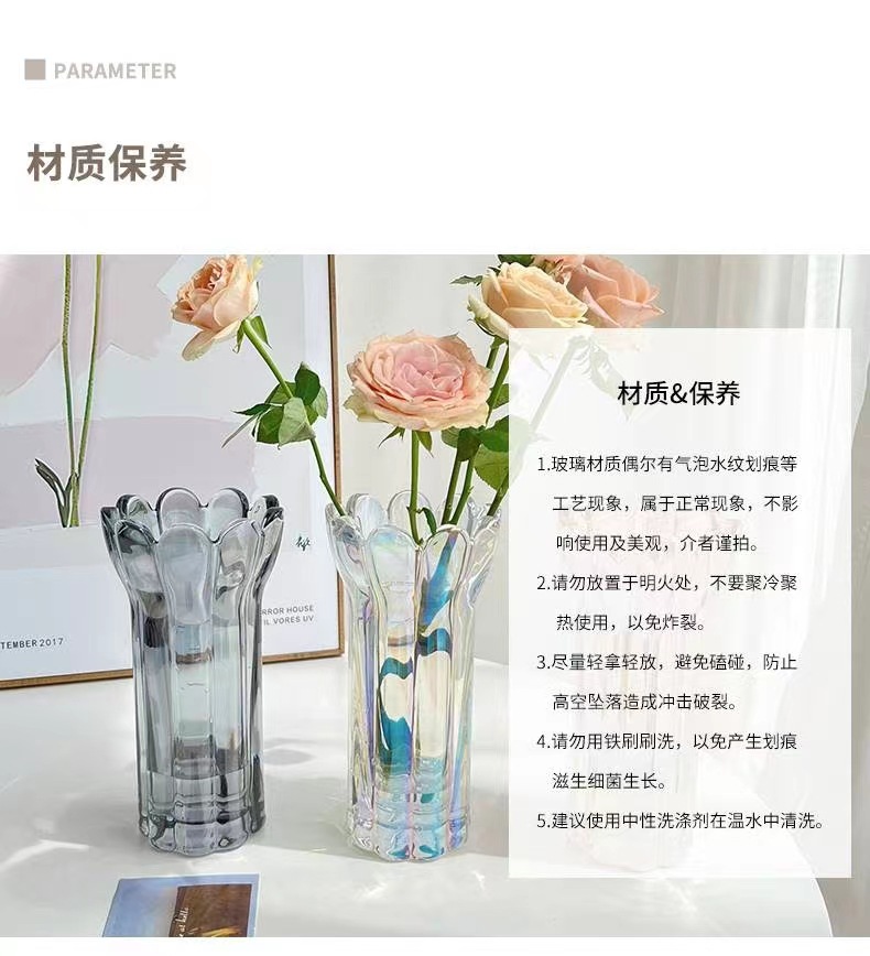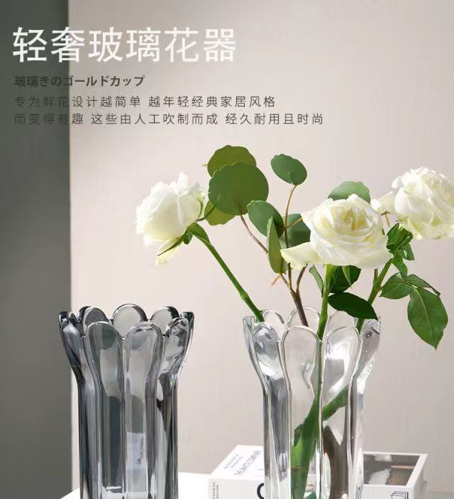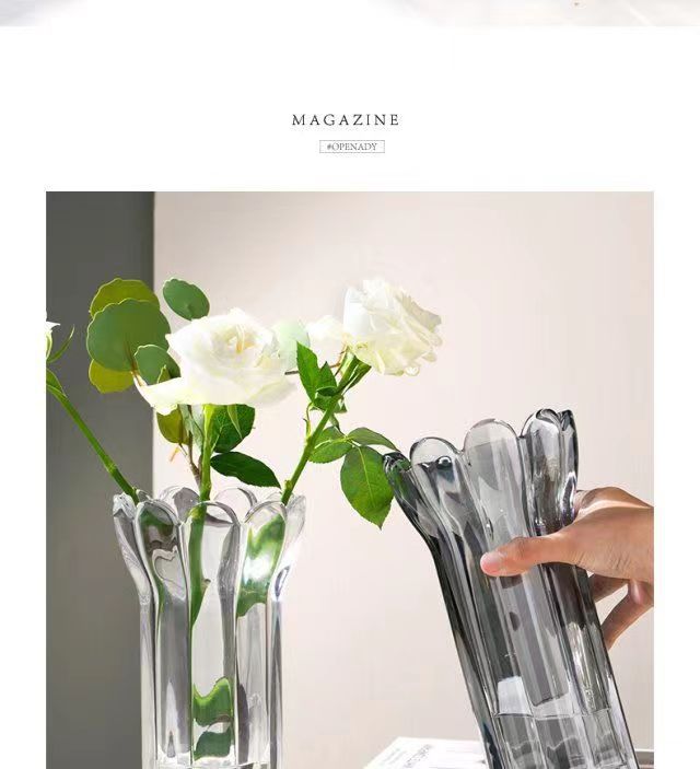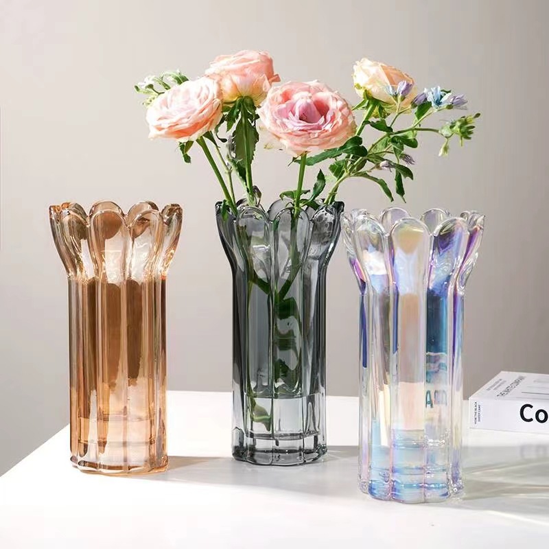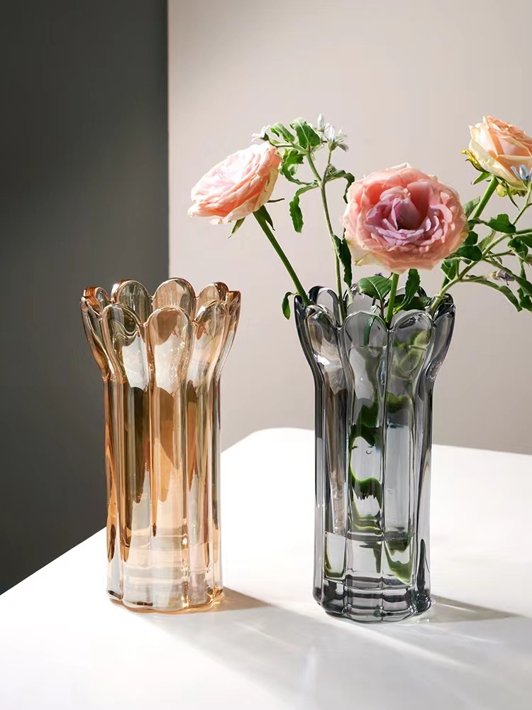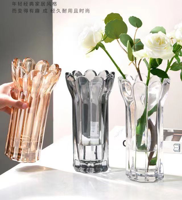 加厚高级感水晶玻璃花瓶客厅餐桌水养干花插花器创意玻璃花瓶