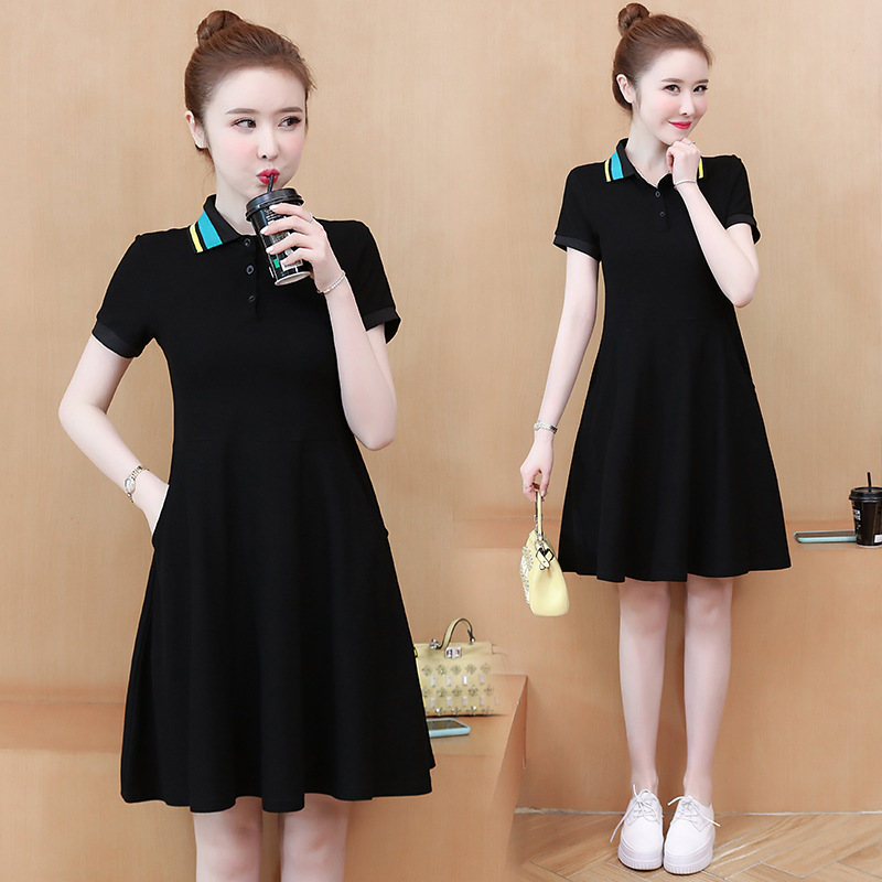 时尚翻领连衣裙藏肉显瘦a字裙夏气质减龄法式小黑裙