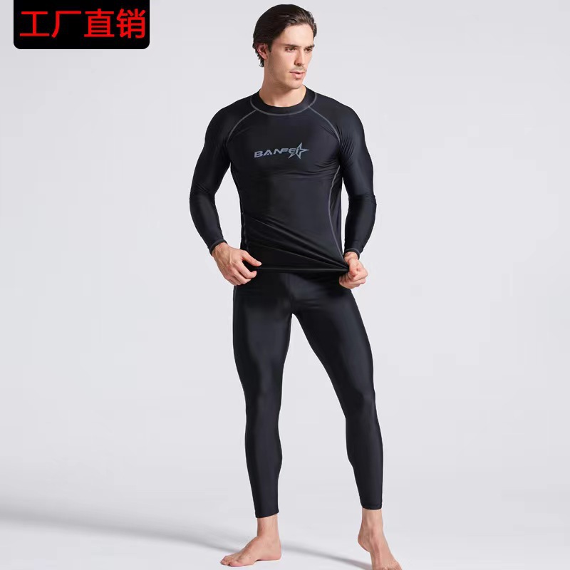 男款长袖长裤速干九分裤游泳衣教练服浮潜冲浪服男款分体泳衣