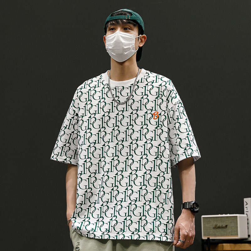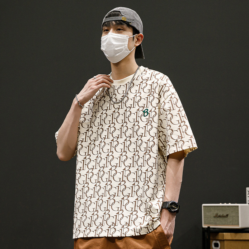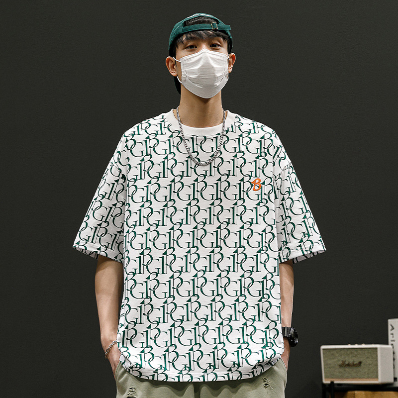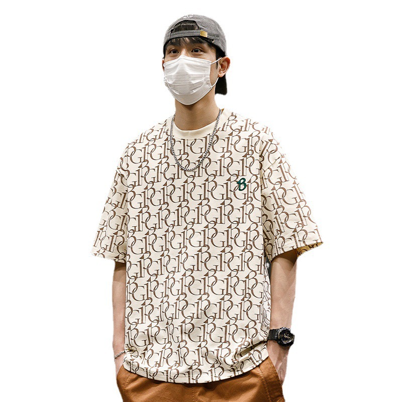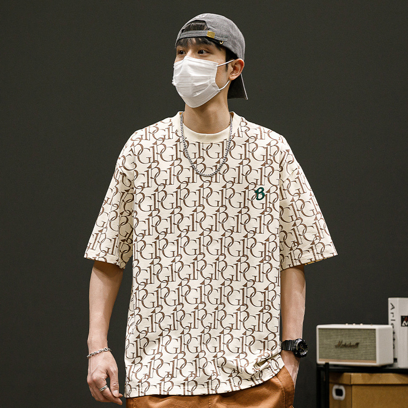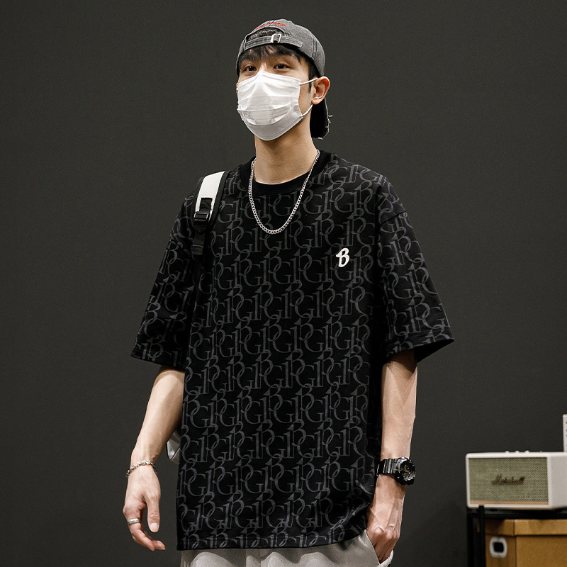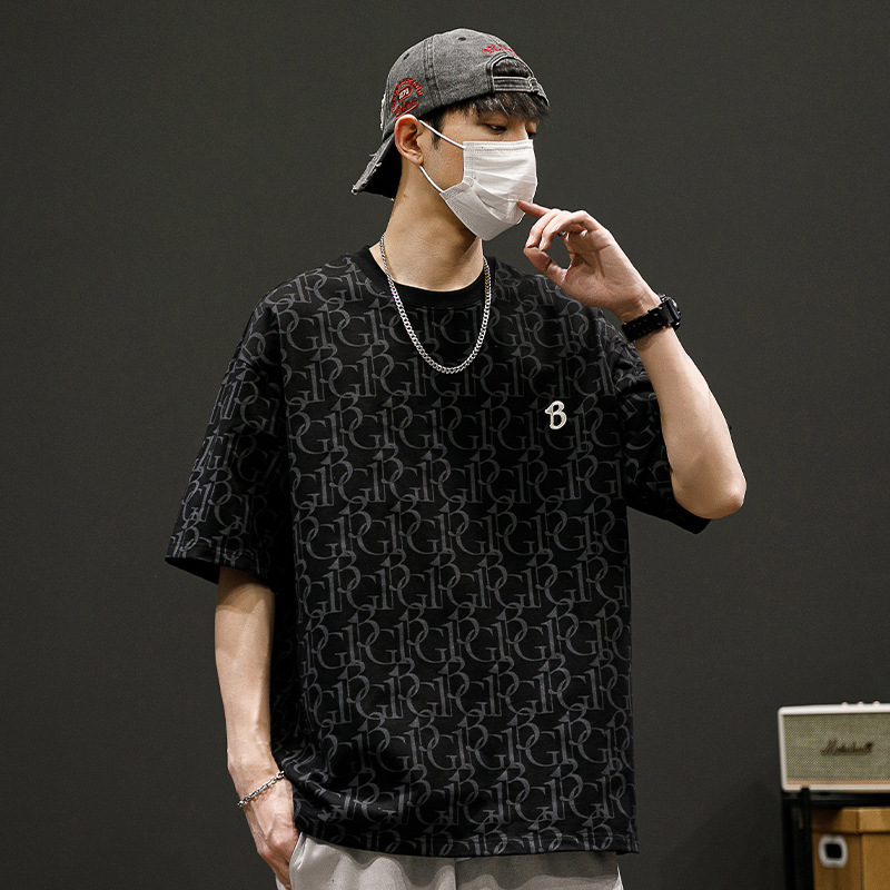 潮牌港风短袖t恤男士宽松夏季落肩百搭潮牌上衣半袖五分袖T恤男款