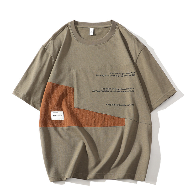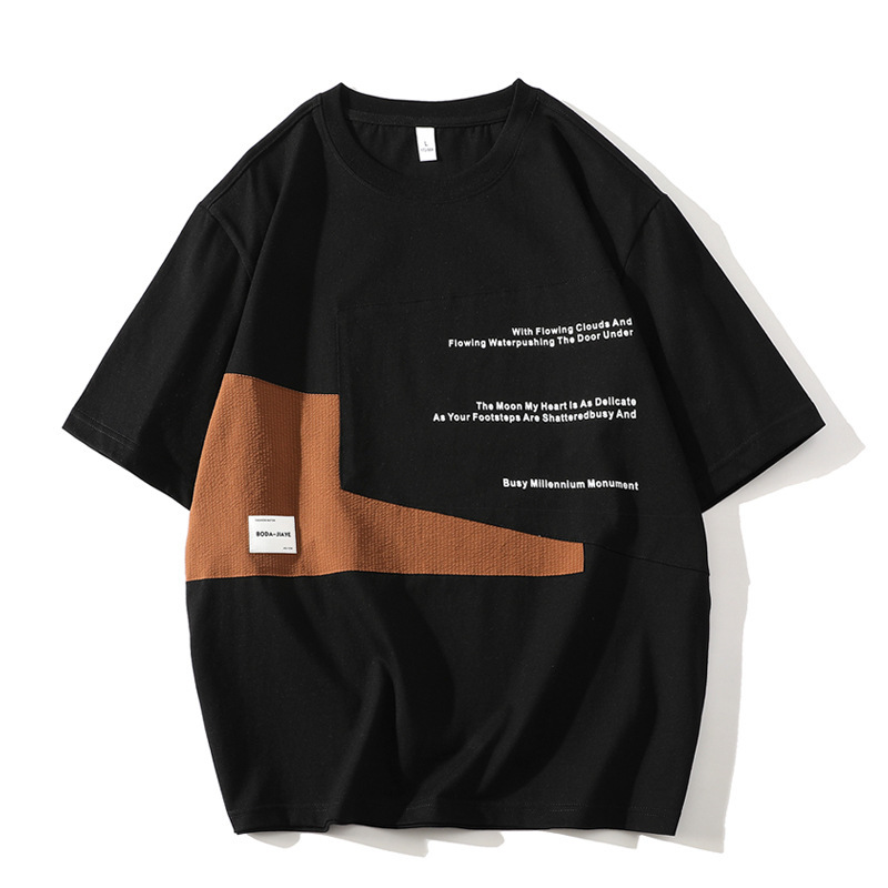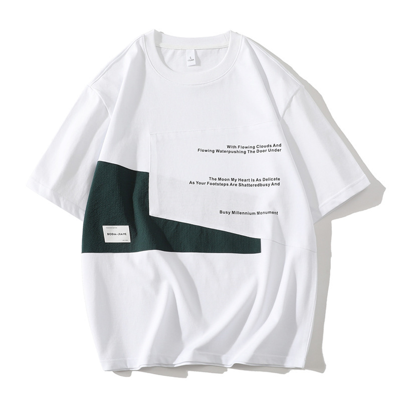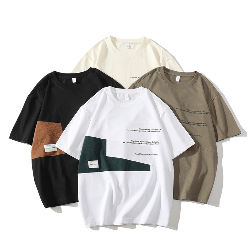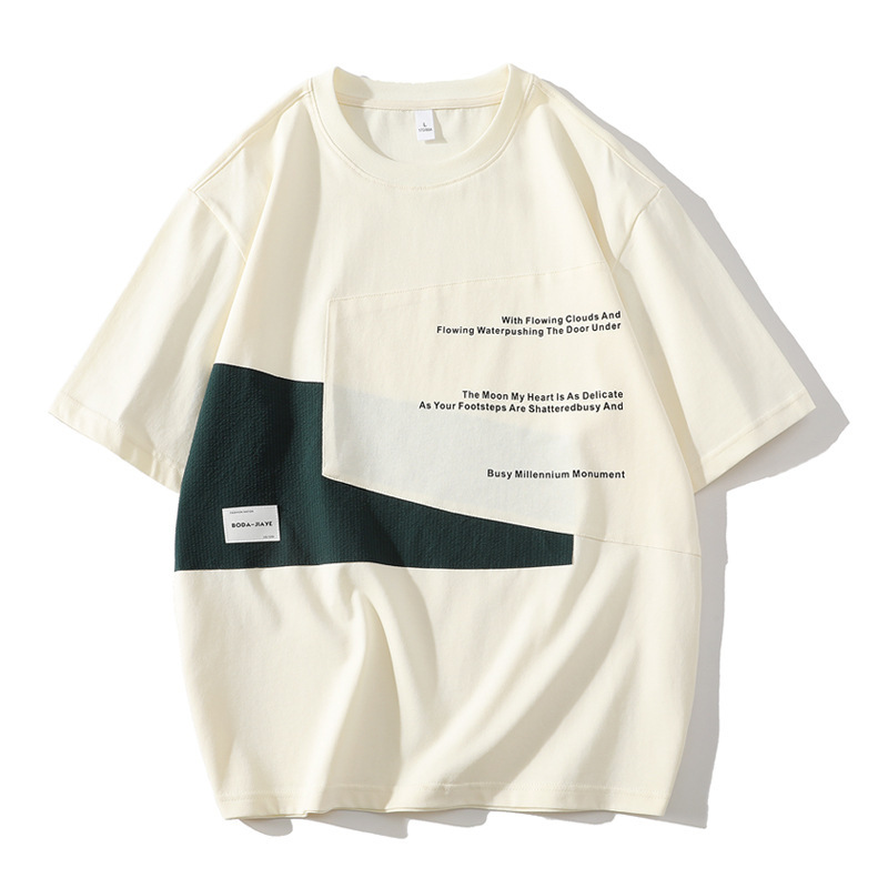 短袖T恤男潮牌夏季宽松五分袖新款潮流ins简约印花圆领体恤外贸款