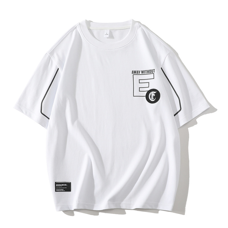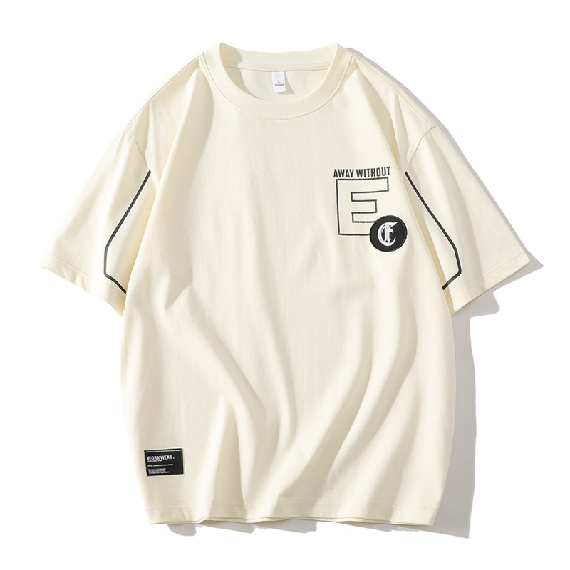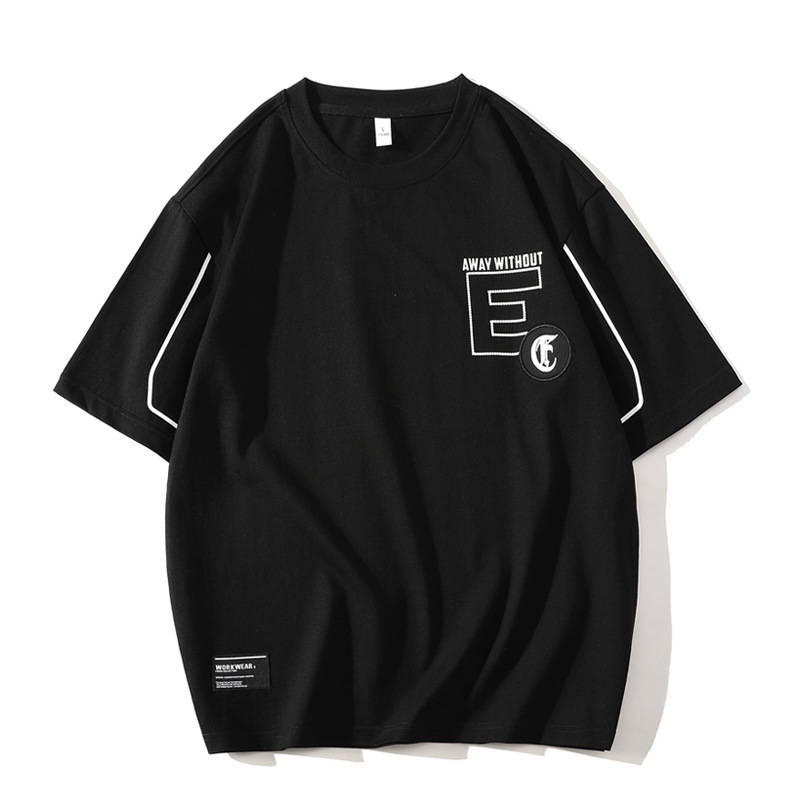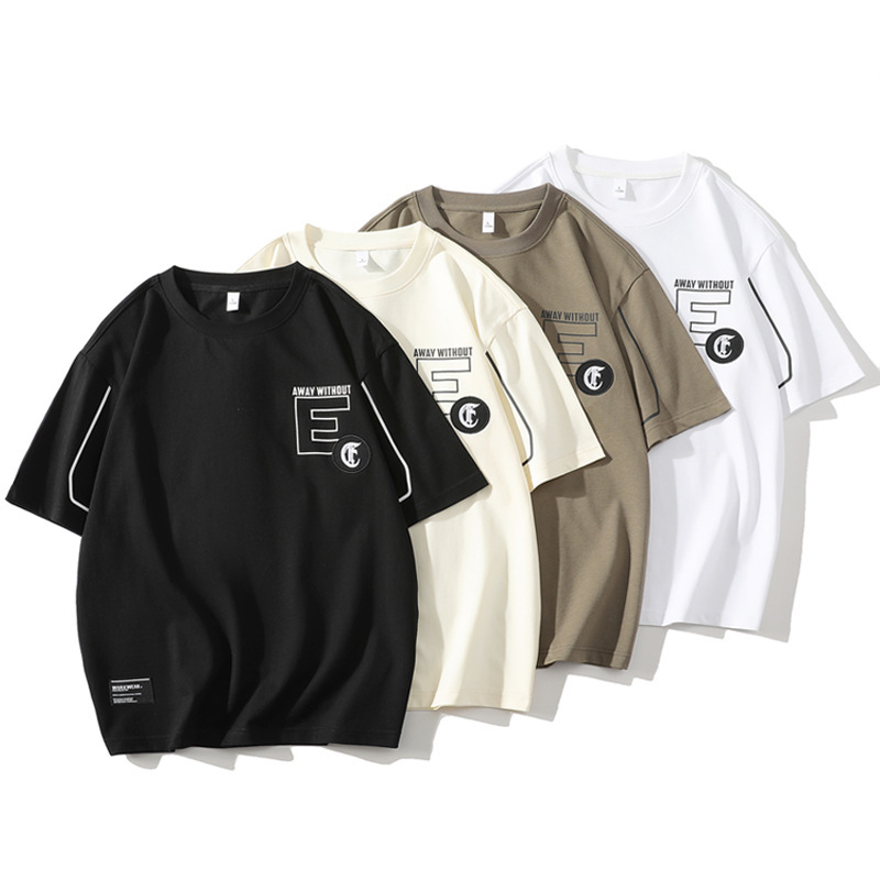 短袖t恤男士夏季潮牌时尚落肩透气五分袖T恤圆领休闲薄款半袖体恤