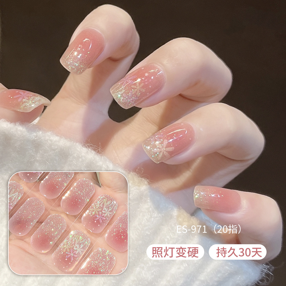 【ES971】20指半固化凝胶uv半烤美甲贴指甲贴片照灯变硬