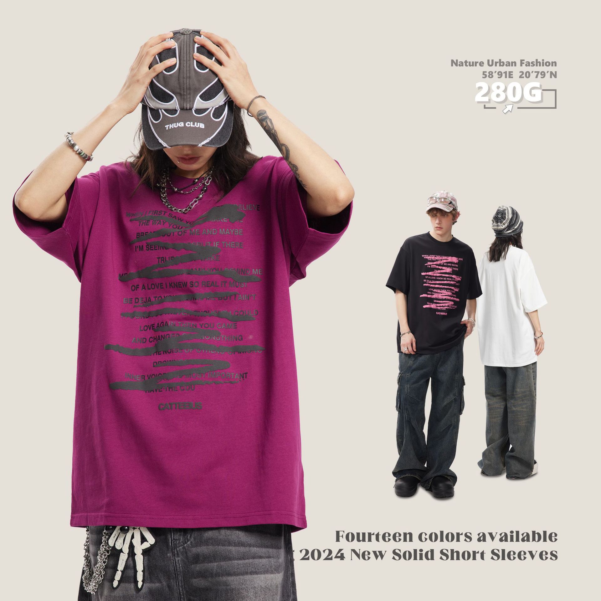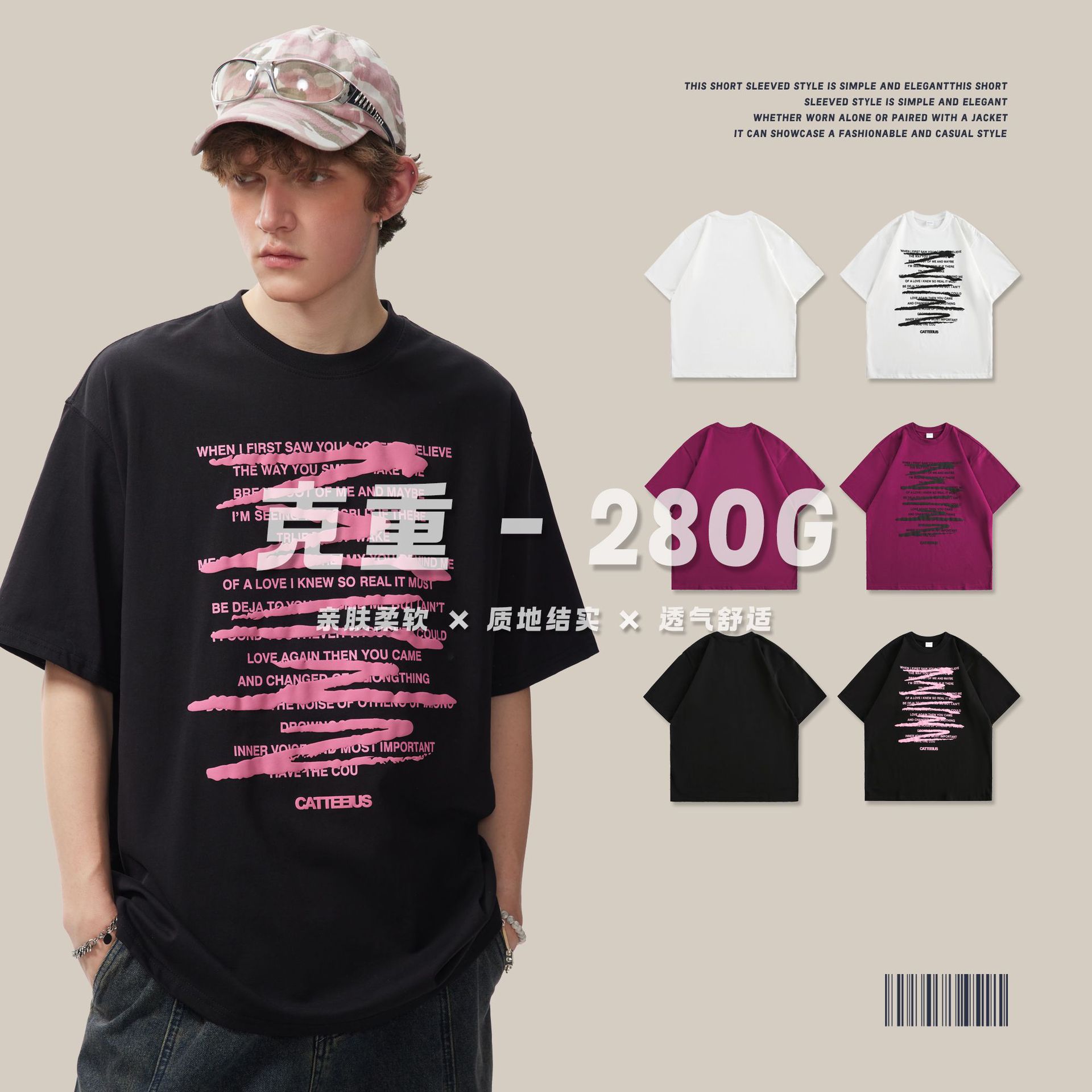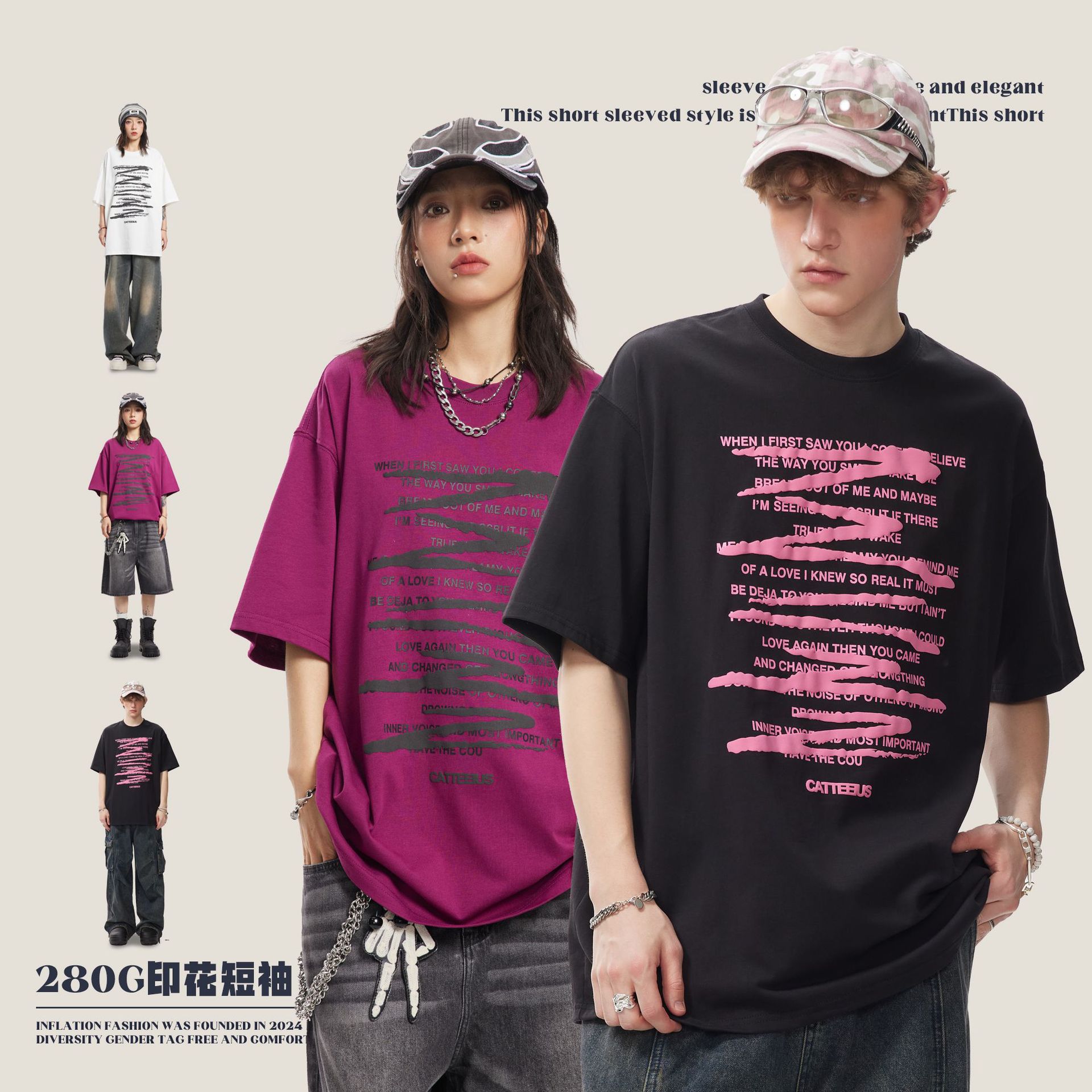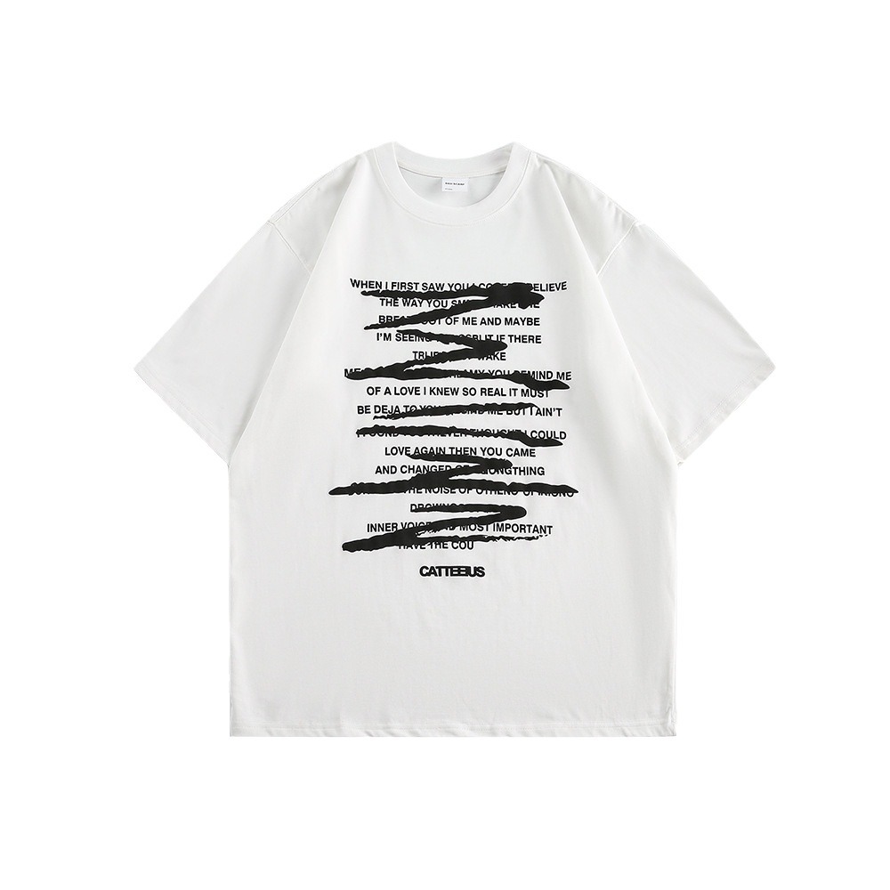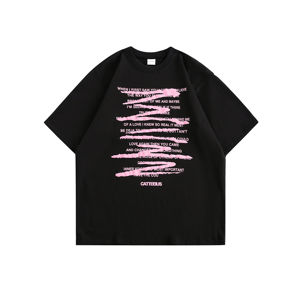 CATTEE美式涂鸦短袖男女夏季高街潮牌280克情侣百搭印花宽松T恤