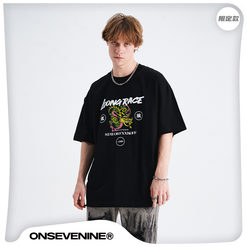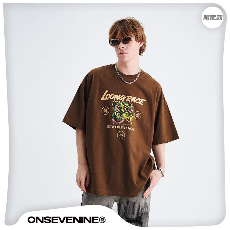 VIVGAE潮牌国潮短袖龙年印花设计宽松oversize男式T恤男女