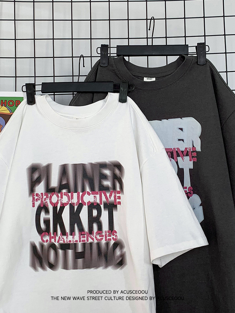 ACU男装|幻影字母印花短袖美式高街T恤纯棉重磅宽松夏季男女半袖