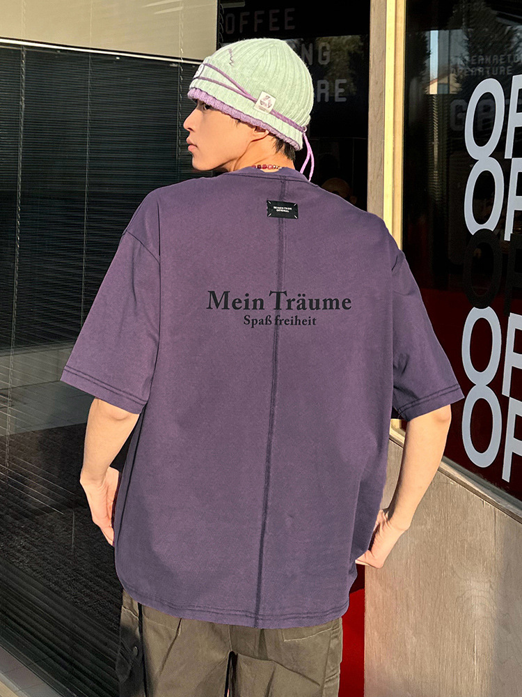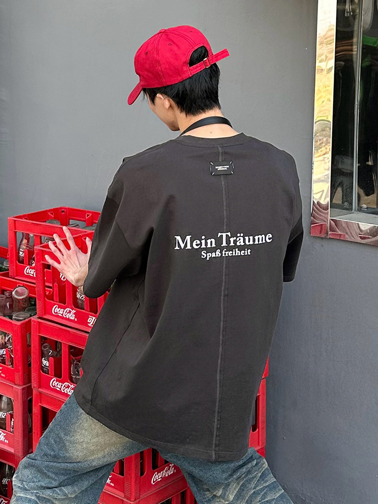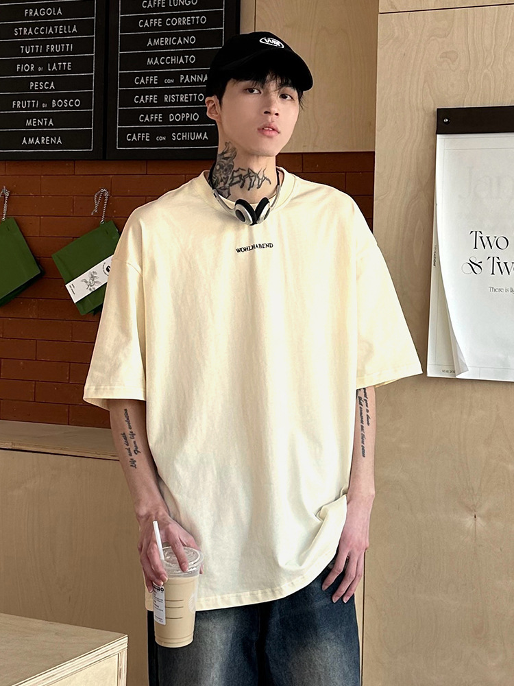 韩路男装 复古美式字母印花T恤男女夏季新款情侣高街潮牌短袖体恤