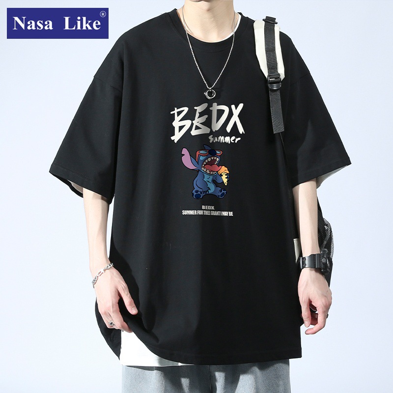 NASA夏季男士短袖纯棉高级感潮牌大码T恤男款新款宽松休闲男