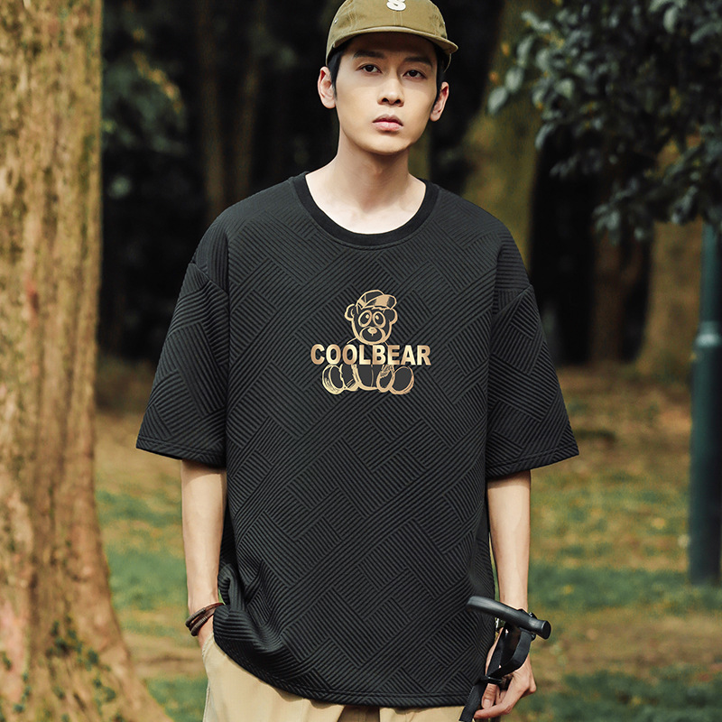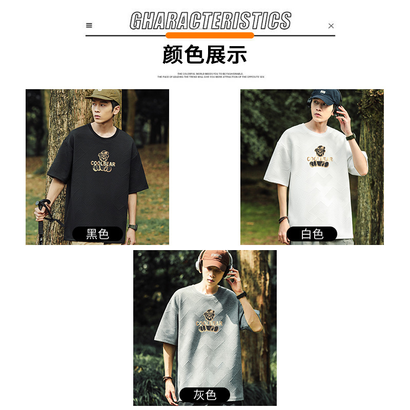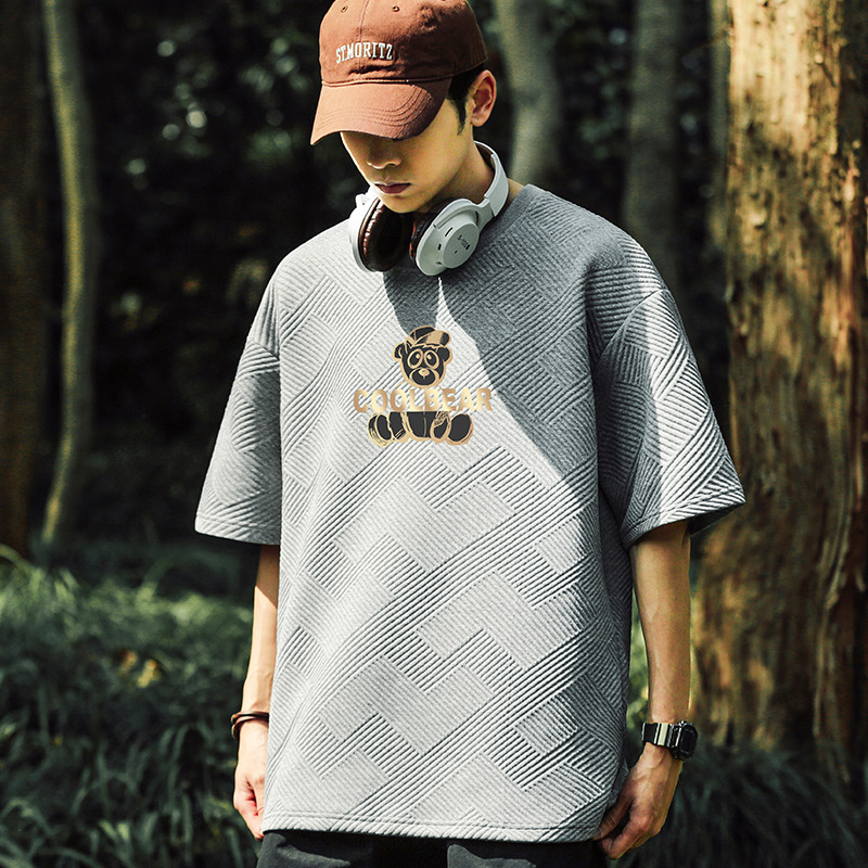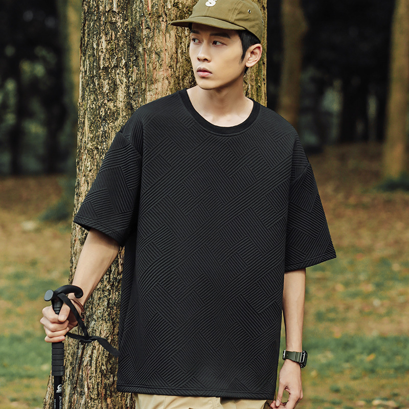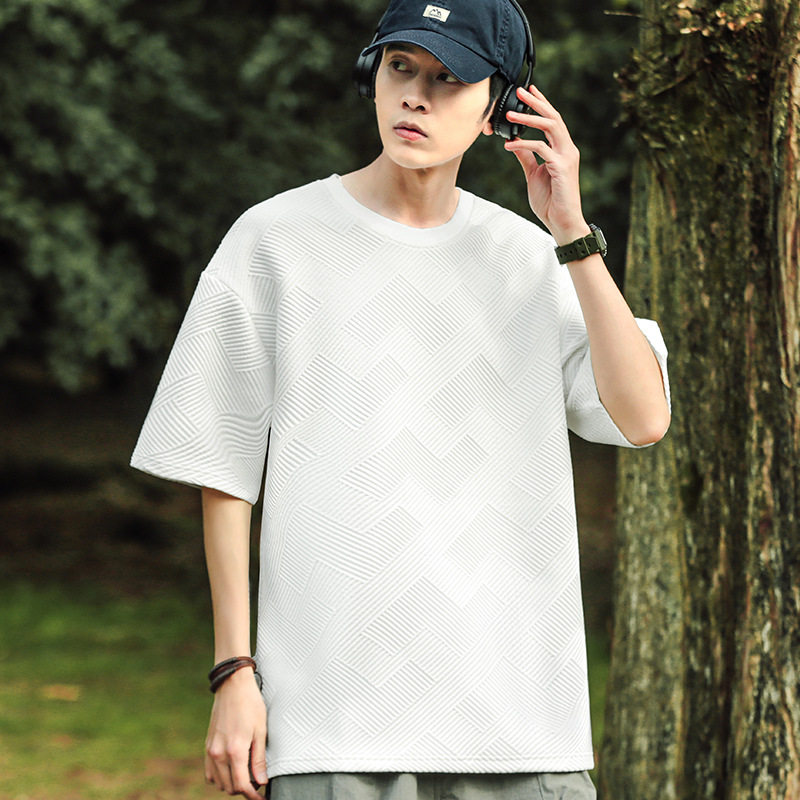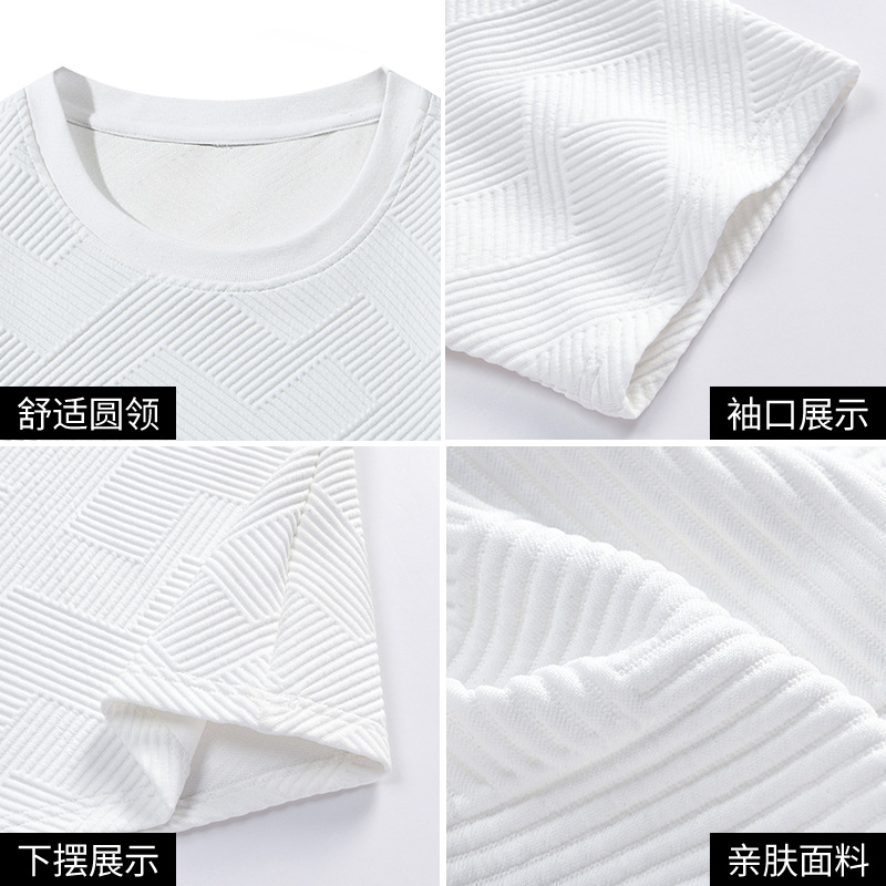 针织斜纹华夫格短袖t恤男大码夏季薄款微胖男生日系潮牌宽松半袖