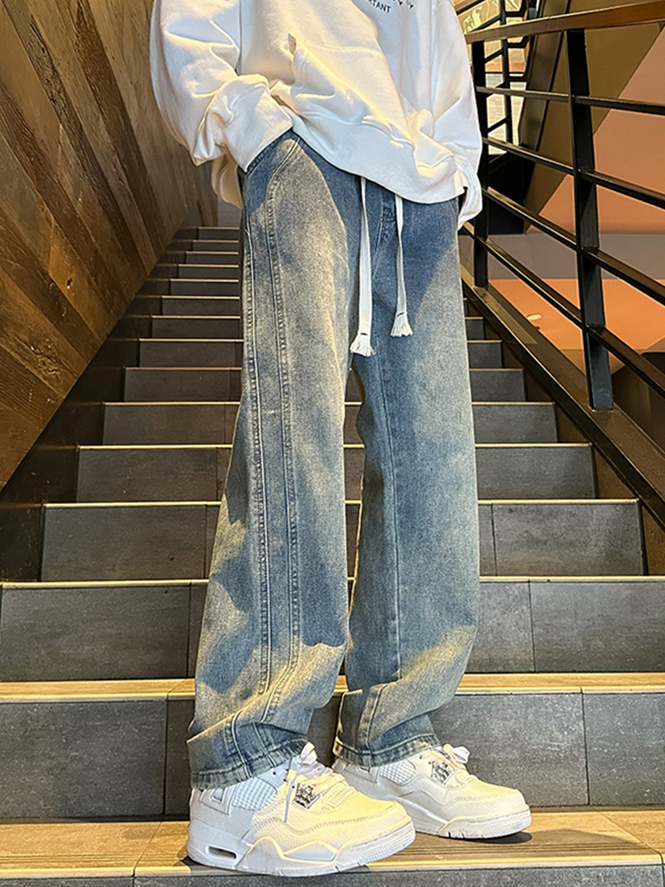 春夏季新款日系直筒牛仔裤男韩版潮流宽松阔腿休闲百搭长裤子