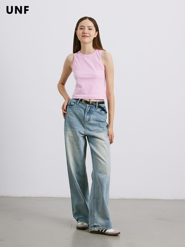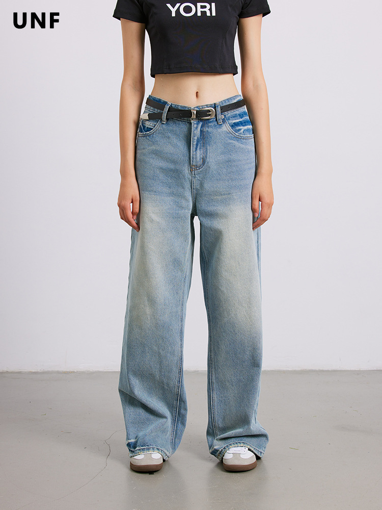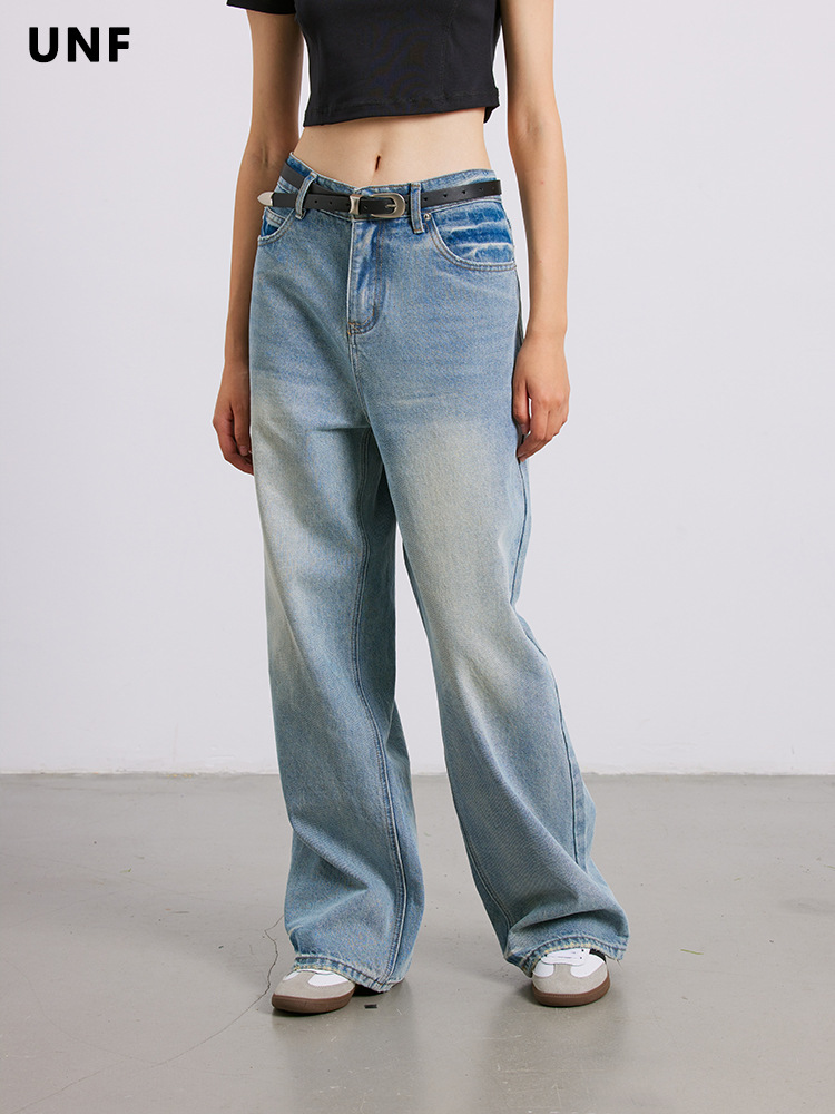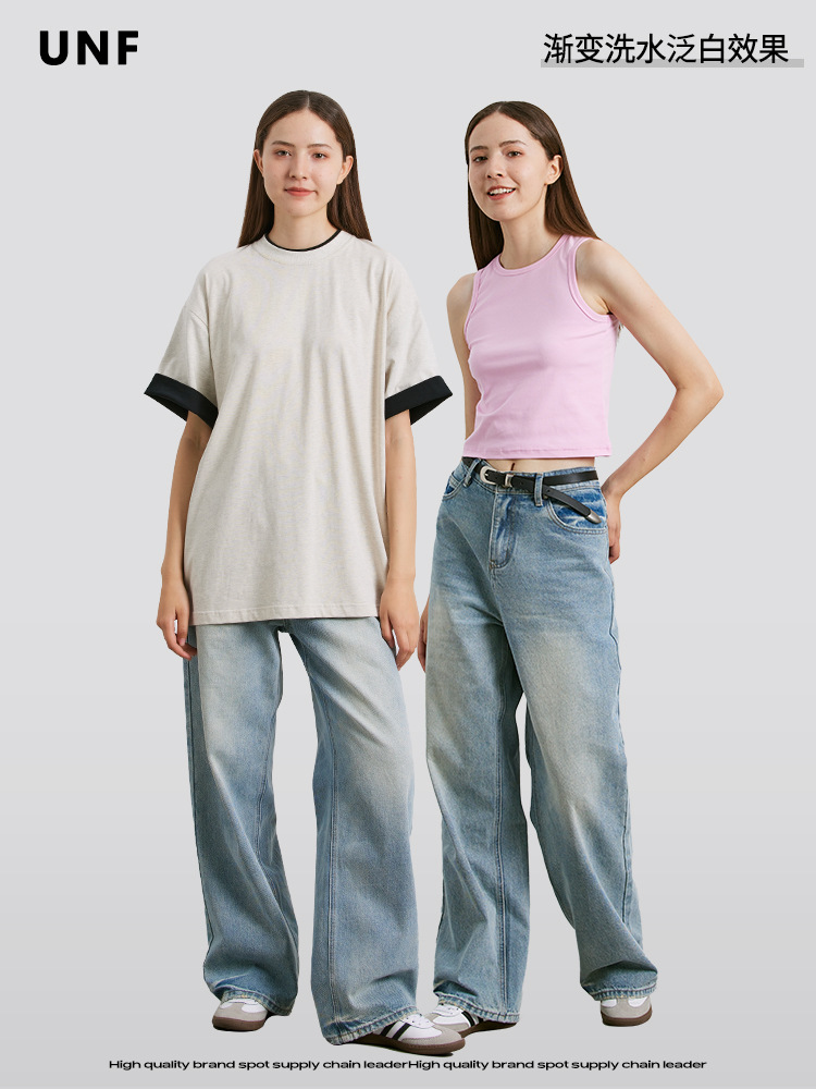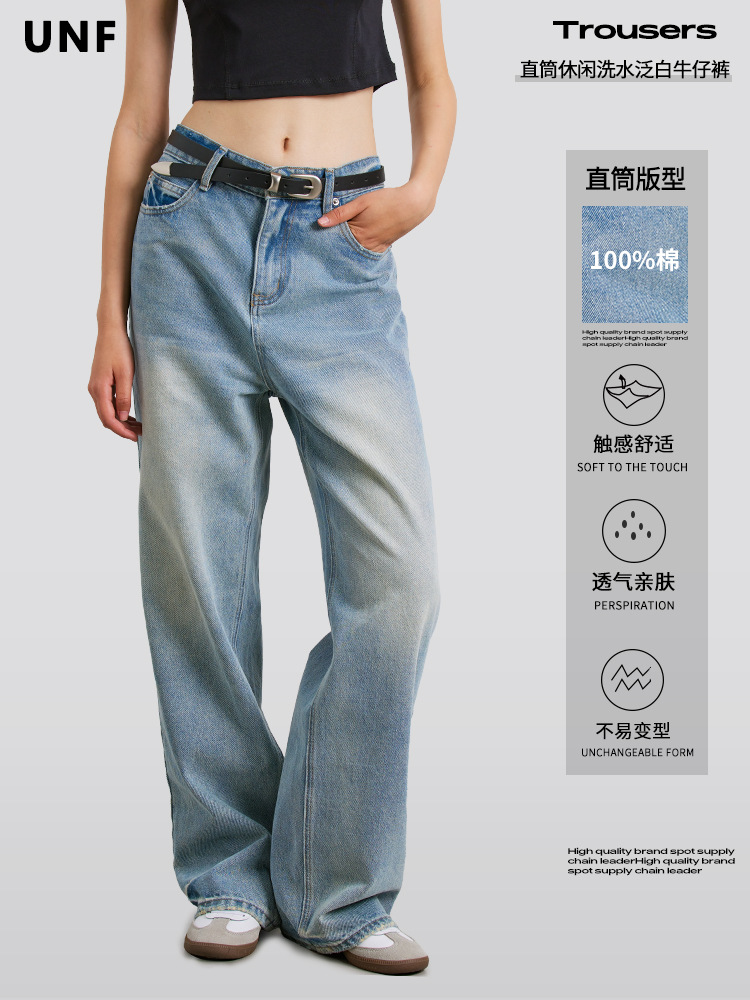 春夏新款基础款纯棉水洗泛白做旧直筒牛仔裤休闲百搭裤子