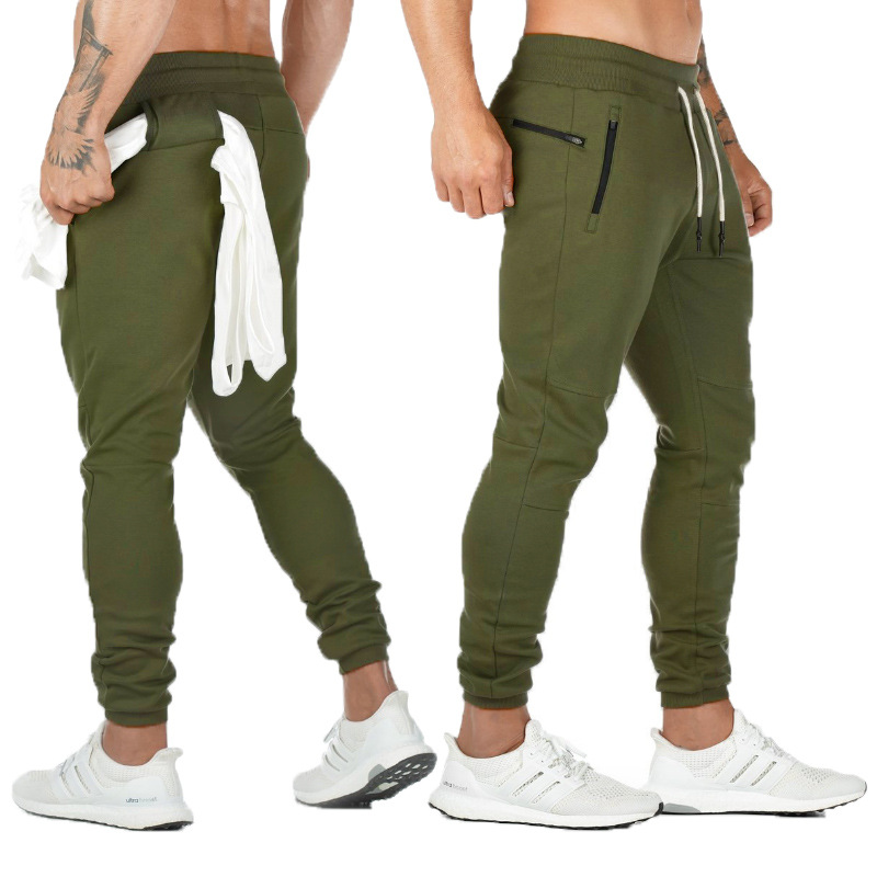 新款欧美运动长裤男士健身挂毛巾长裤跑步训练小脚裤