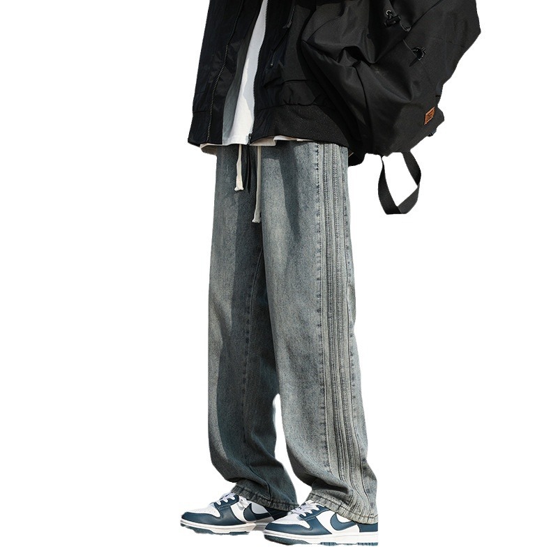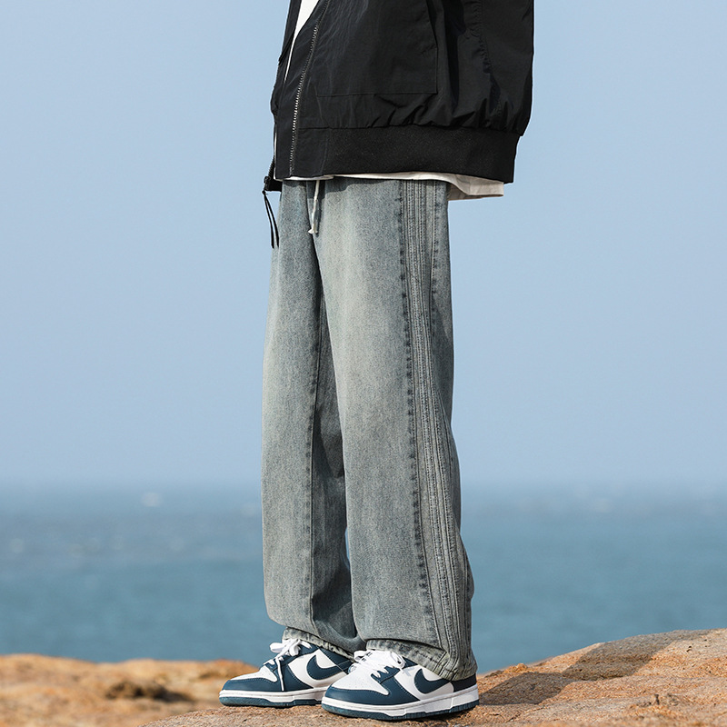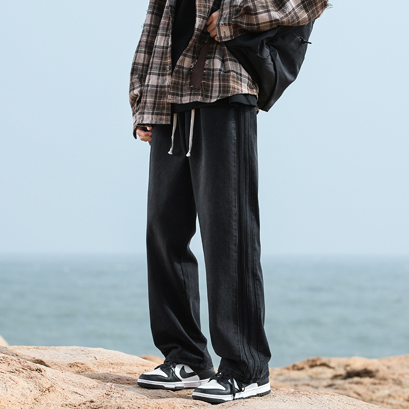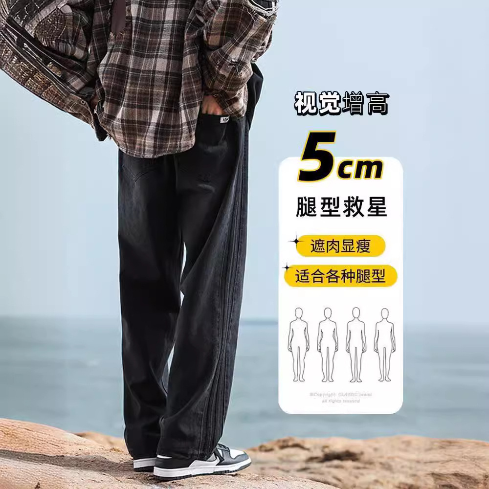 NASA黑色牛仔裤男士春秋季新款宽松休闲直筒裤子美式潮牌痞帅长裤