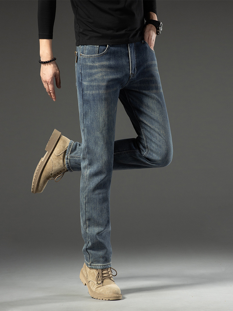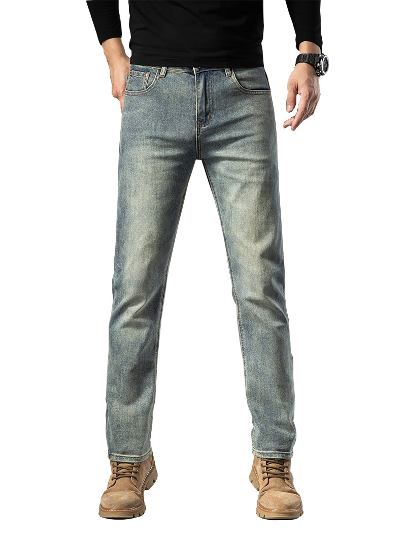 跨境新款潮牌男士休闲长裤中高腰百搭修身直筒牛仔裤男
