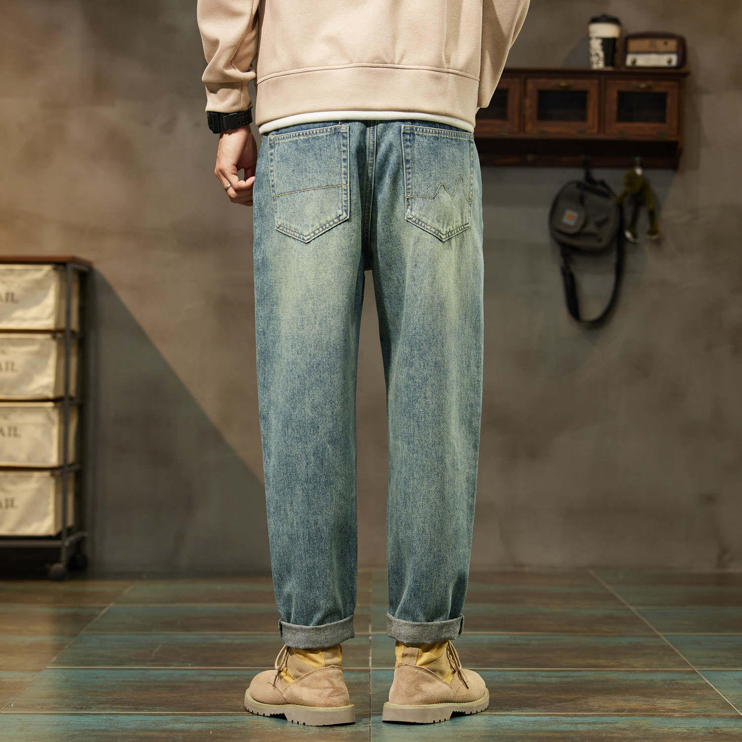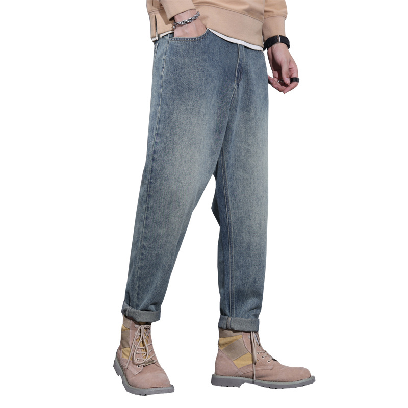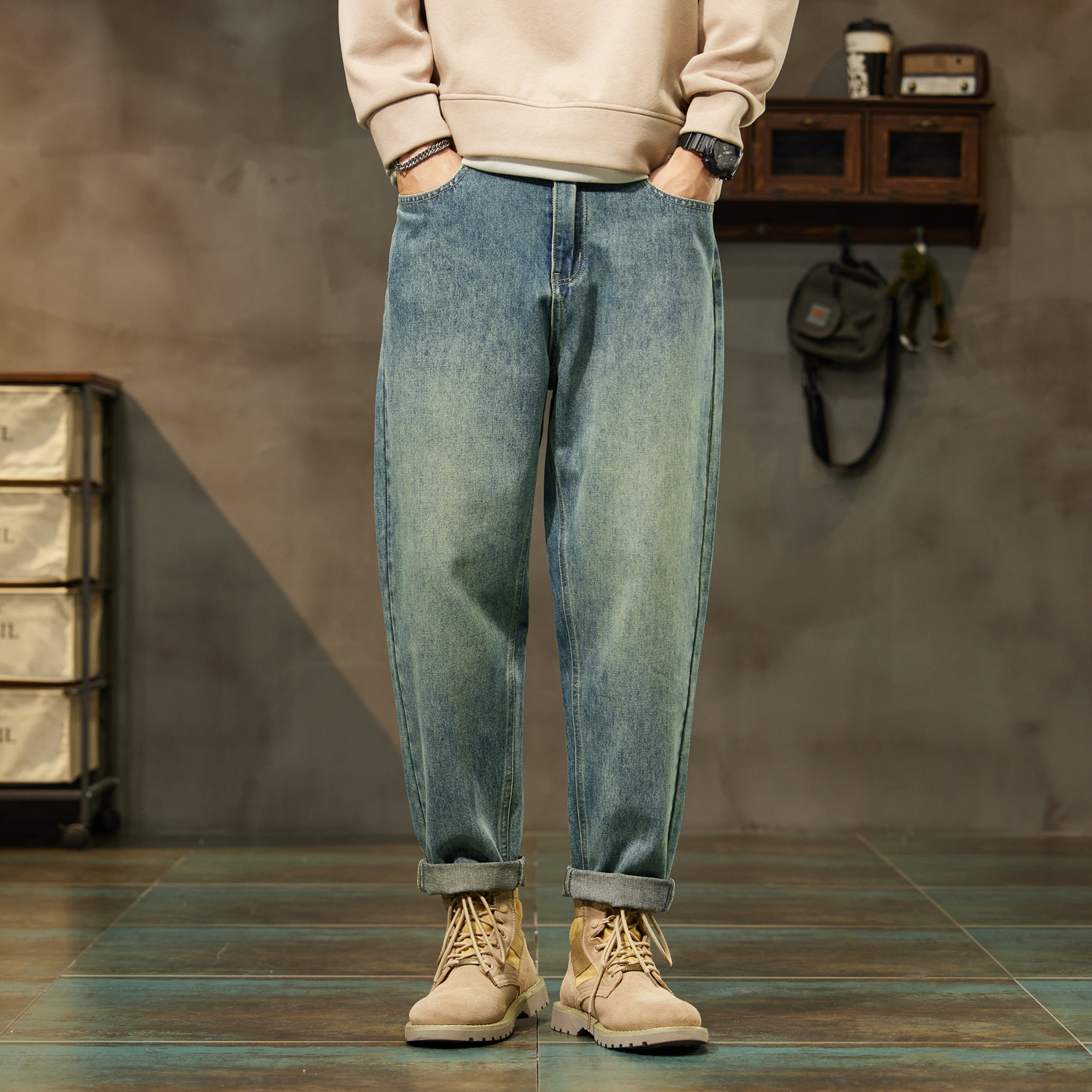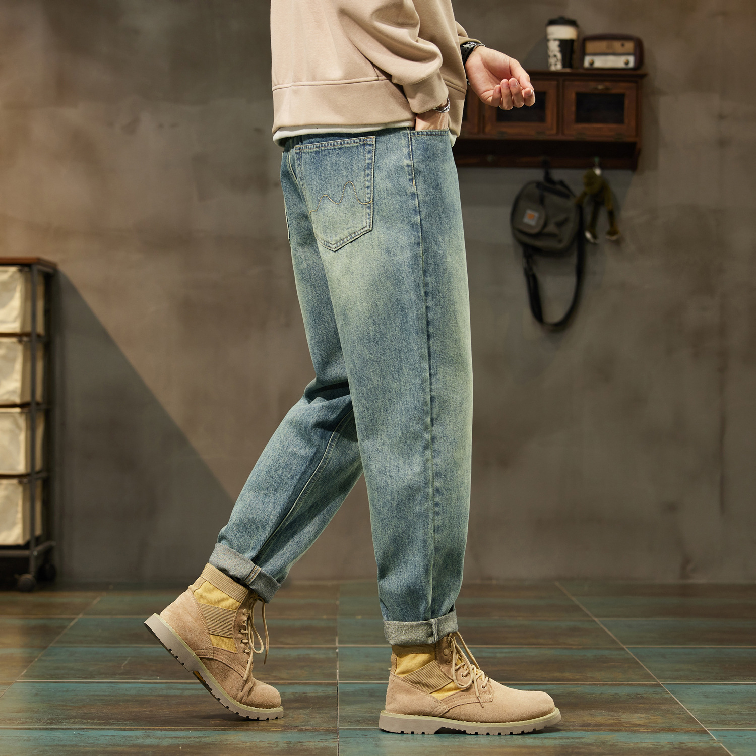 春季新款男装美式高街宽松锥形哈伦长裤子复古做旧百搭牛仔裤