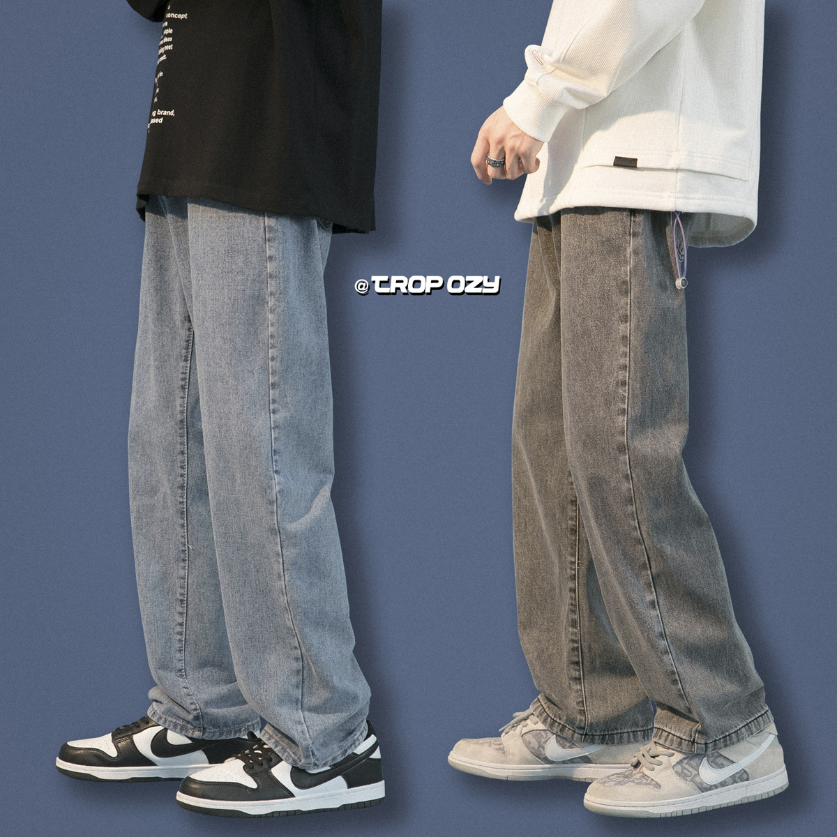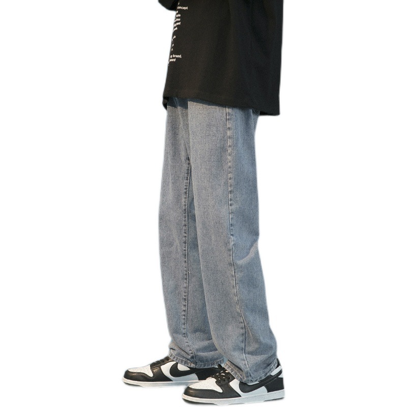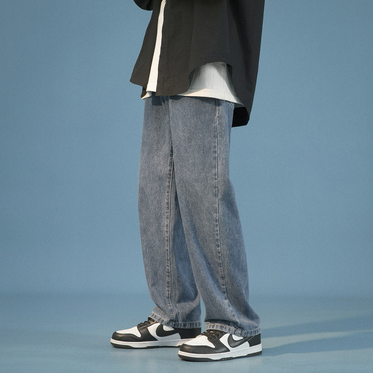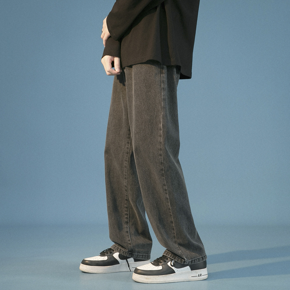 春秋新品男装牛仔裤宽松直筒男潮流长裤学生青少年街头简约裤