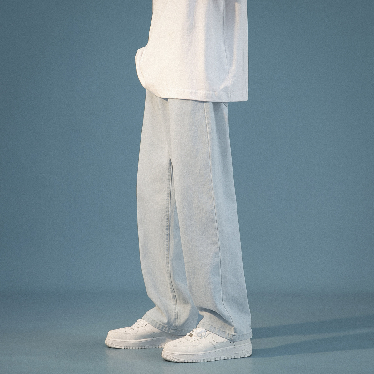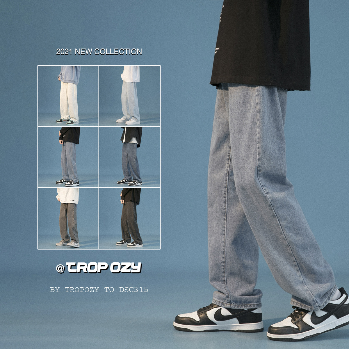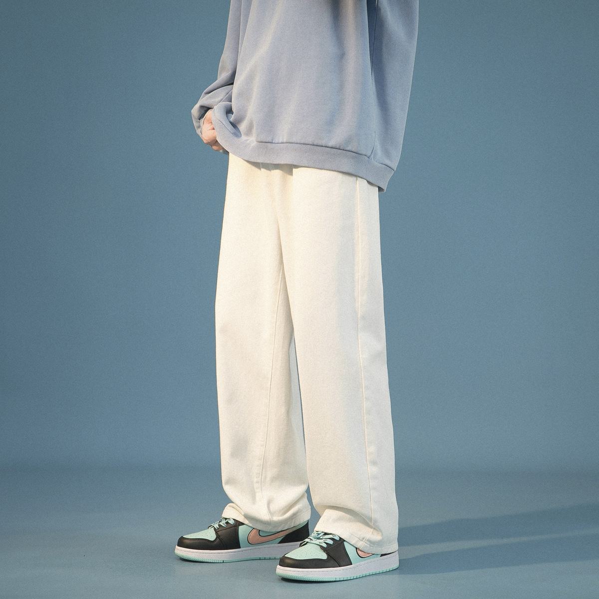春秋新品男装牛仔裤宽松直筒男潮流长裤学生青少年街头简约裤