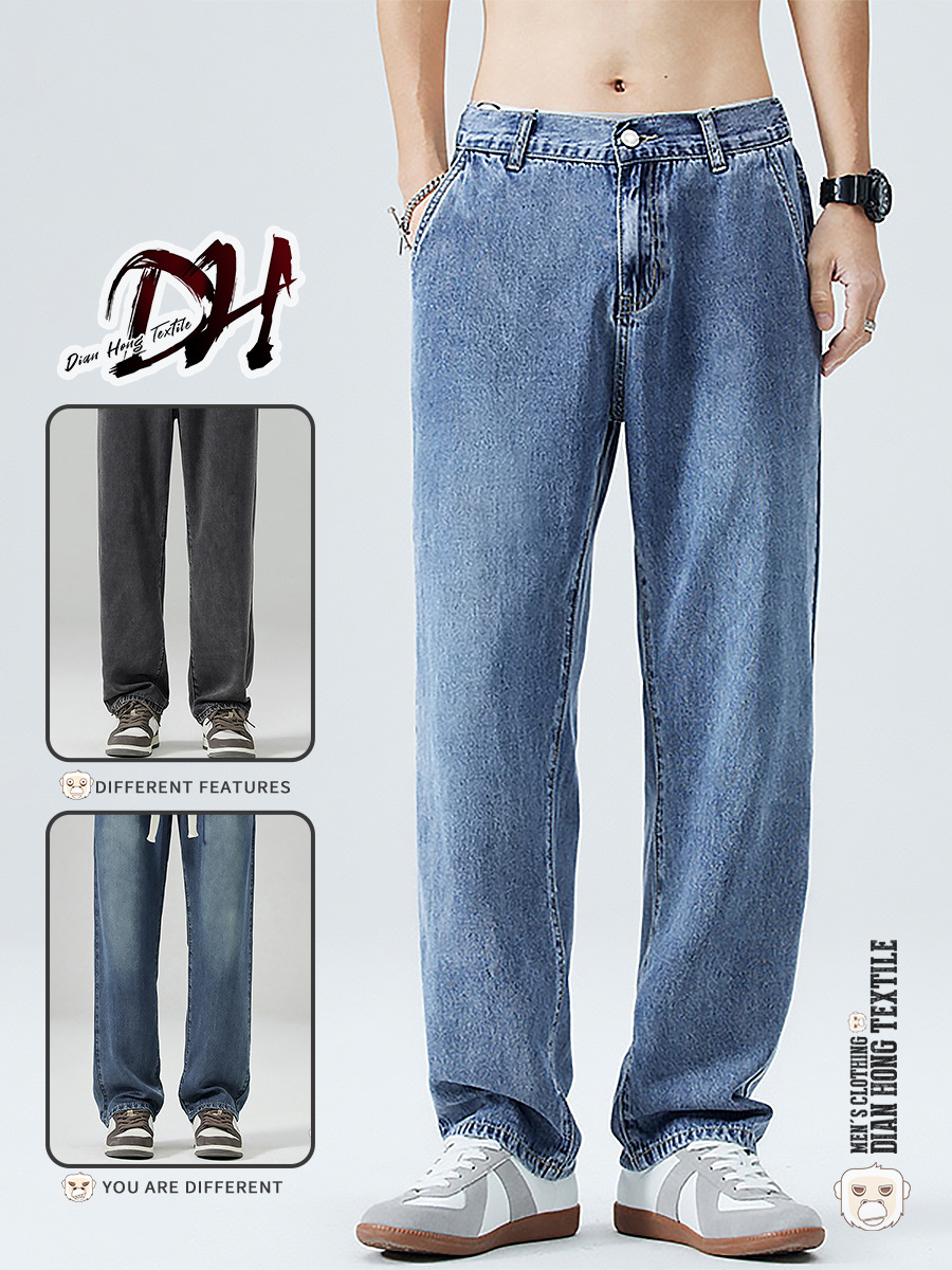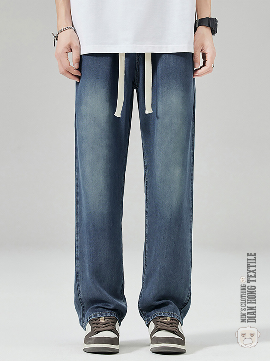 男装天丝莱赛尔牛仔裤牛子男士春夏季秋薄款宽松垂感直筒冰丝阔腿