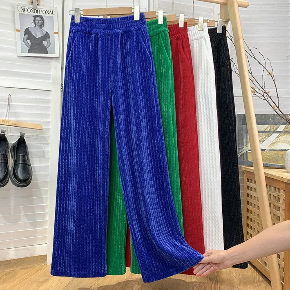 显腿长高腰百搭克莱因蓝休闲阔腿裤女秋装垂感显瘦拖地丝绒直筒裤
