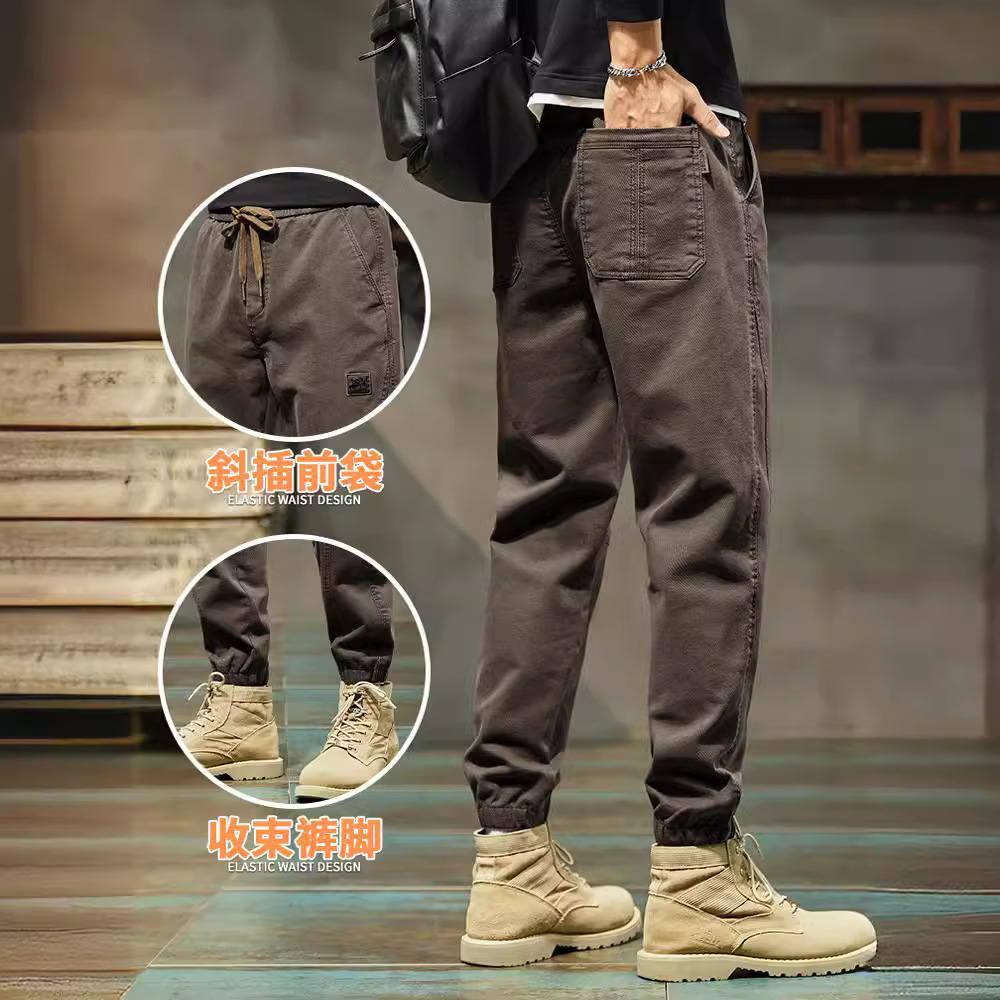 休闲裤男潮牌春季新款直播大码百搭九分束脚直筒宽松工装裤子男款