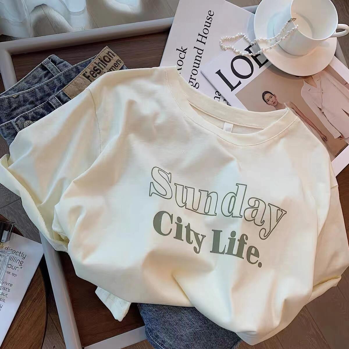 白色字母简约莫代尔短袖t恤女夏季新款韩版宽松百搭高档半袖体恤
