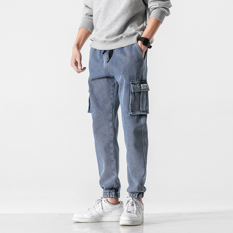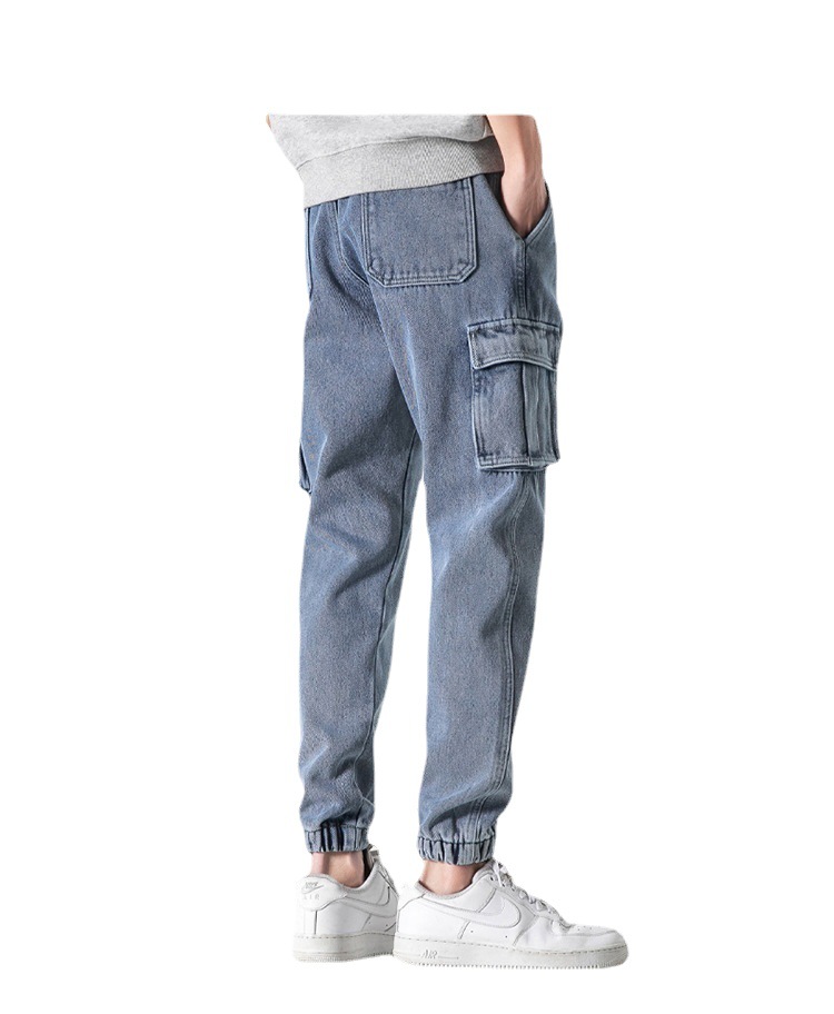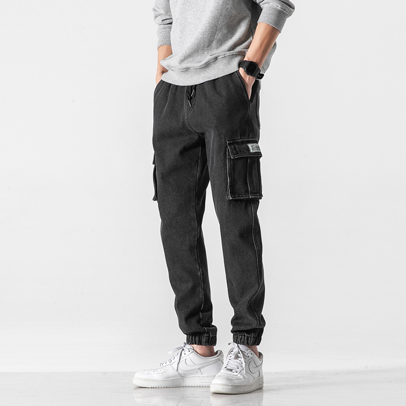 男士弹力休闲大码工装裤韩版潮牌牛仔裤男宽松秋季哈伦束脚长裤子