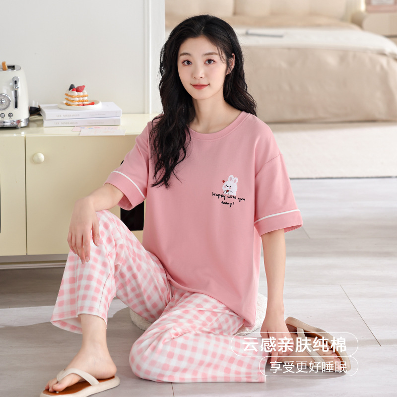 纯棉睡衣女夏季短袖长裤新款全棉少女士卡通学生家居服套装