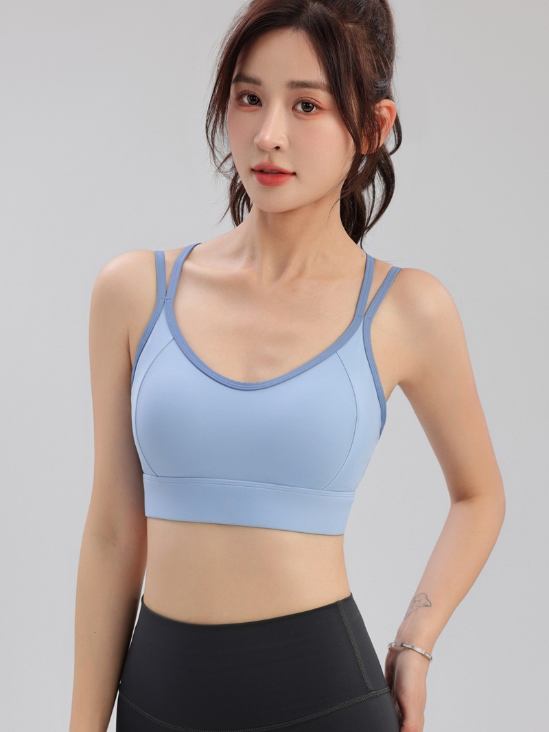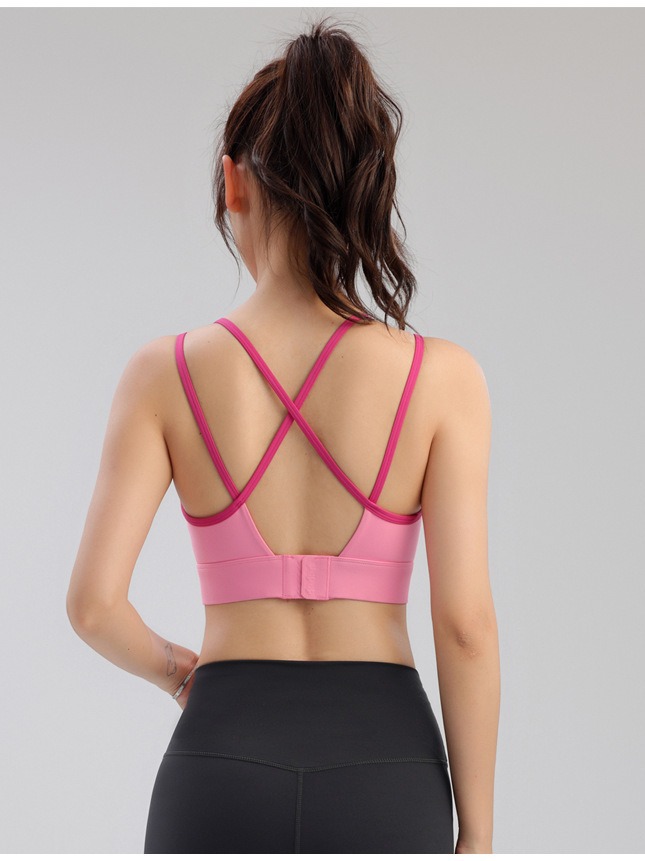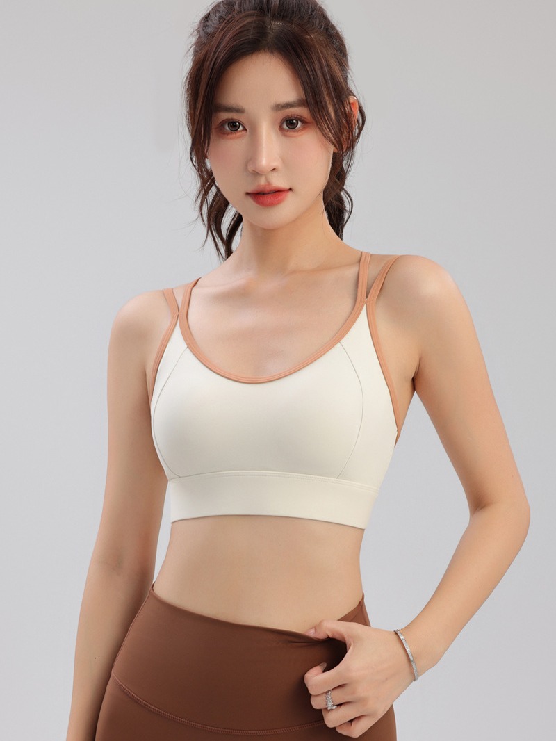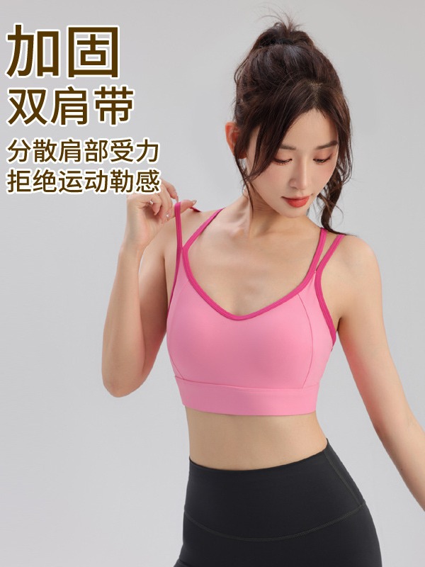 运动内衣女细肩带固定一体杯撞色拼接速干暴汗健身跑步瑜伽美背女