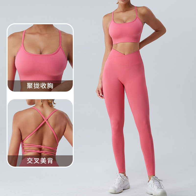 欧美无缝裸感瑜伽服女速干瑜伽美背聚拢运动内衣户外跑步健身文胸
