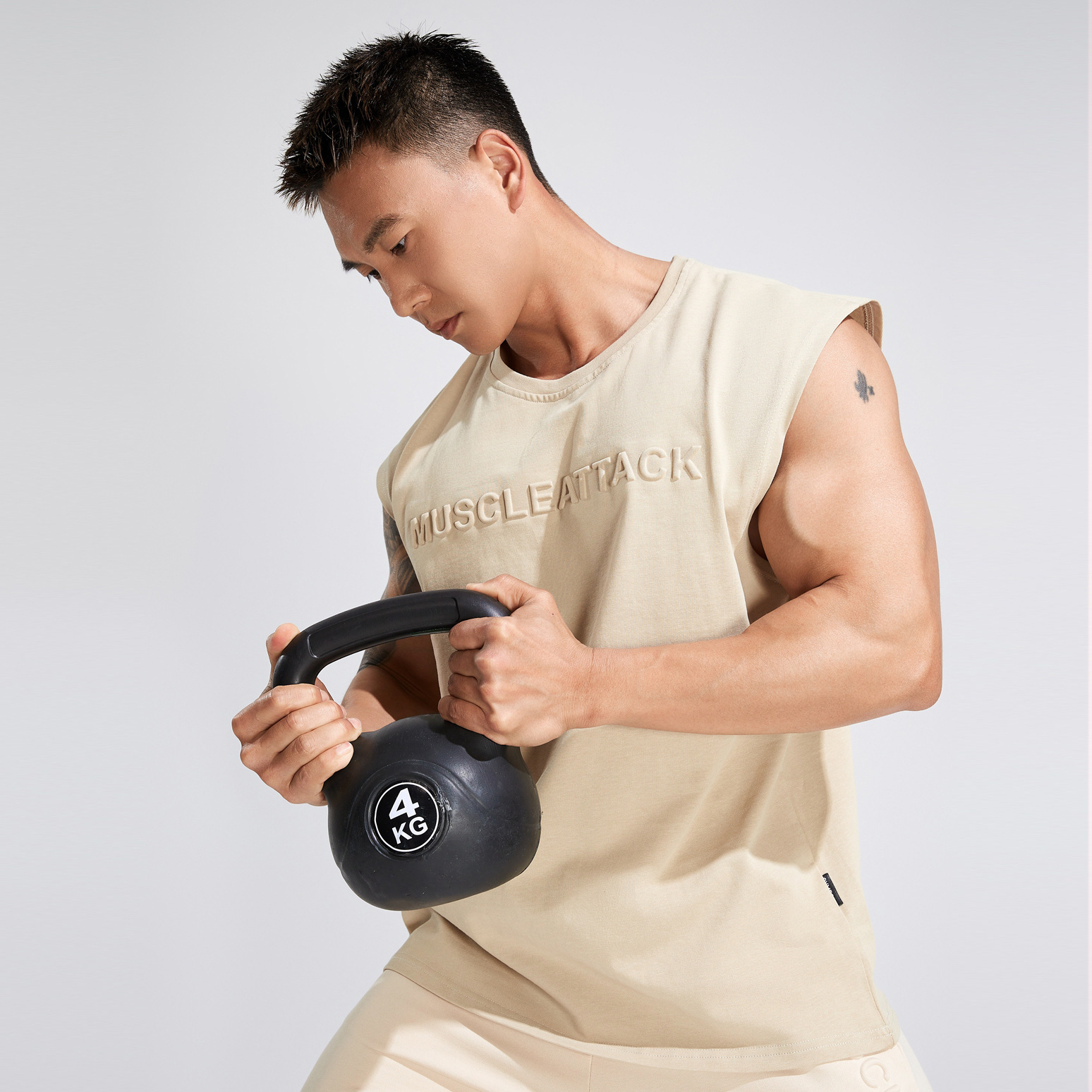 兄弟新款健身肌肉夏季重磅棉质宽肩背心休闲跑步运动男士无袖上衣