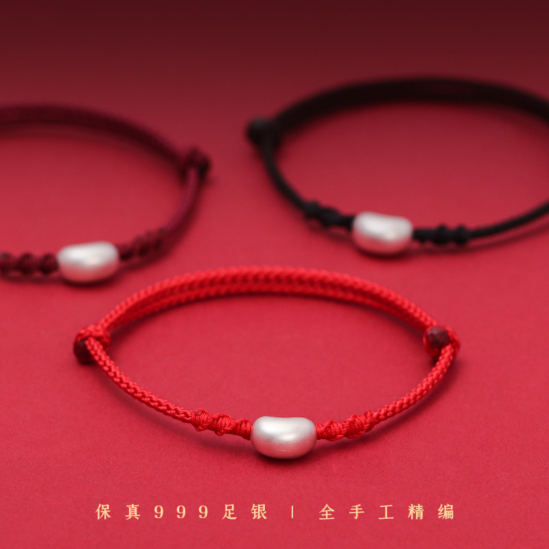 【相思豆】S999纯银相思豆手链纯手工编织红绳手绳本命年七夕礼物