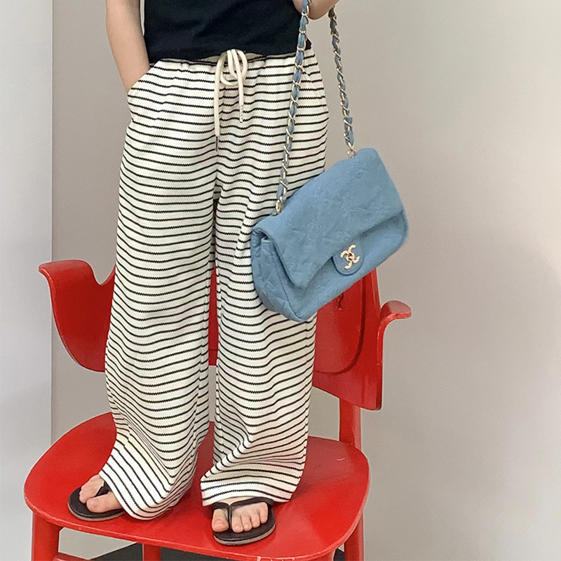夏季女童休闲裤宝宝洋气儿童个性潮牌韩版运动网红条纹时髦阔腿裤