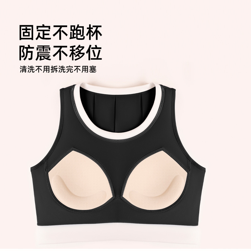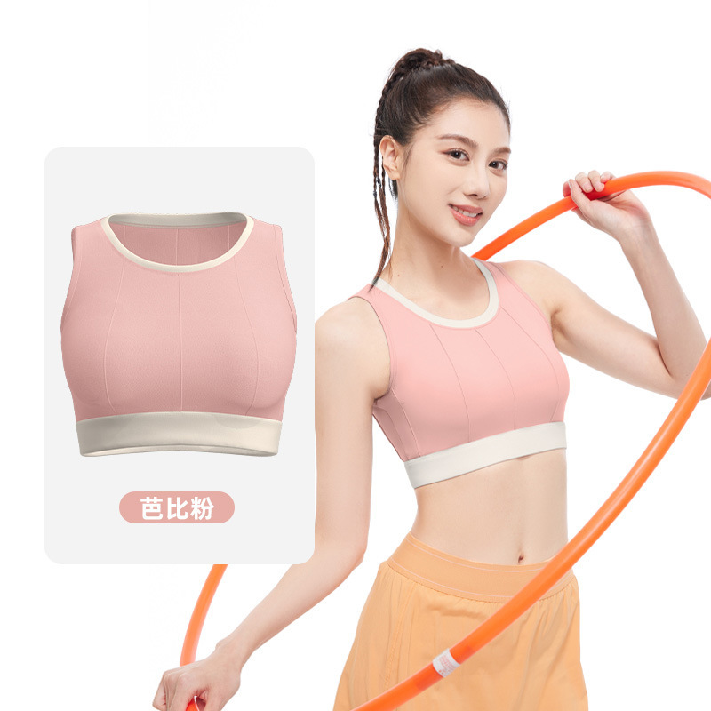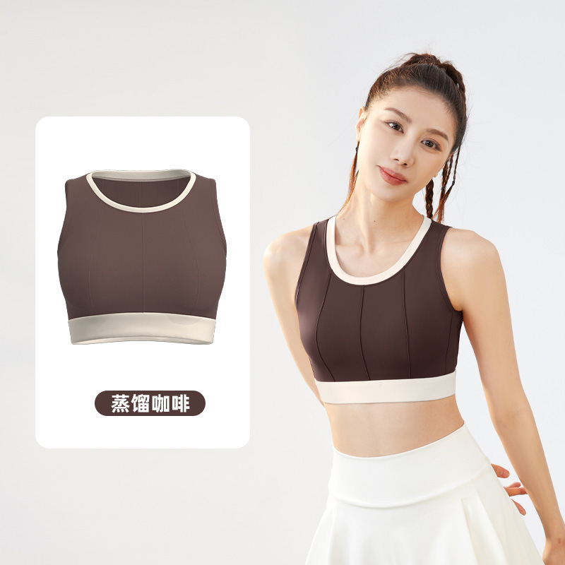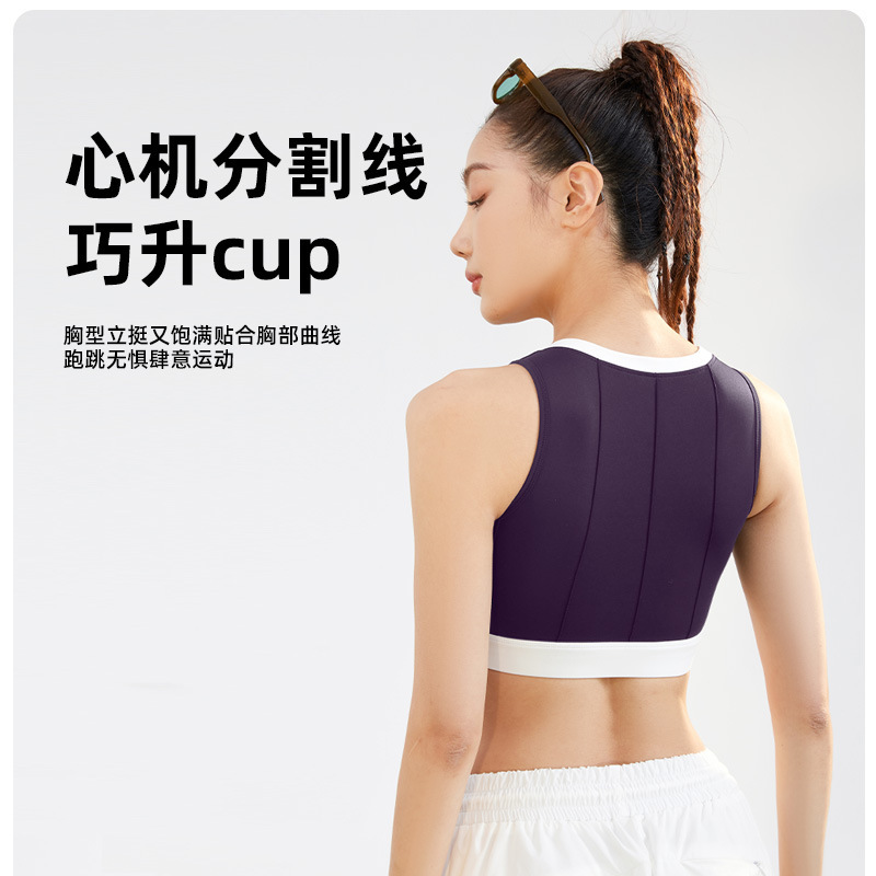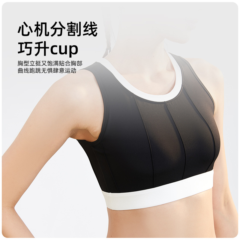 聚衣堂竖纹拼色瑜伽文胸高强度防震固定速干背心式薄款运动内衣女