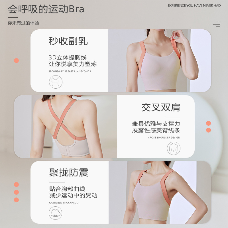 聚衣堂一体固定双肩带排扣无钢圈防震聚拢收副乳健身瑜伽运动内衣