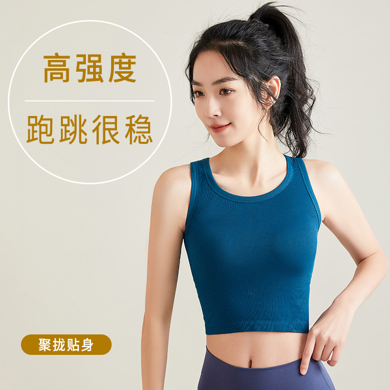 休闲百搭瑜伽运动内衣女背心一体式固定杯上托聚拢可外穿工字美背