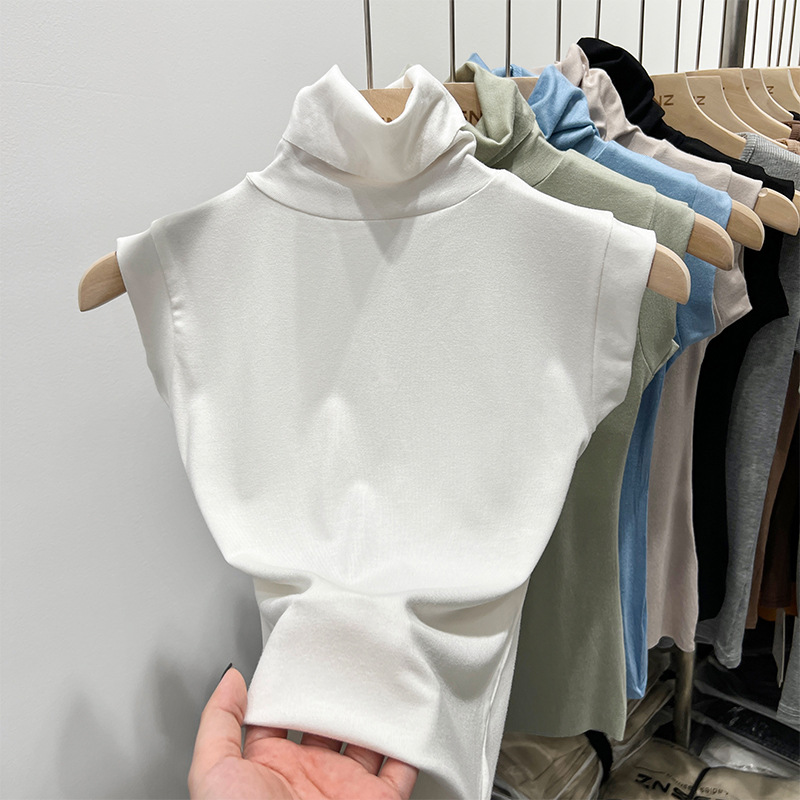 欧货高领打底衫女内搭新款洋气高级感修身无袖上衣白色t恤女