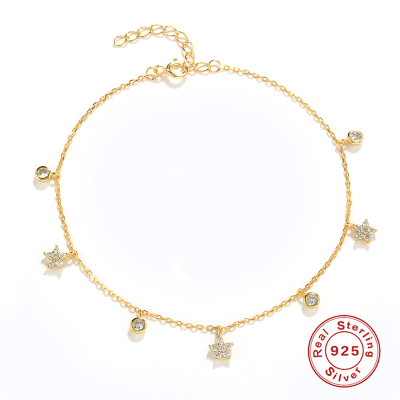 S925纯银多种小配件镶钻脚链个性圆形锆石脚饰品简约花朵造型脚饰