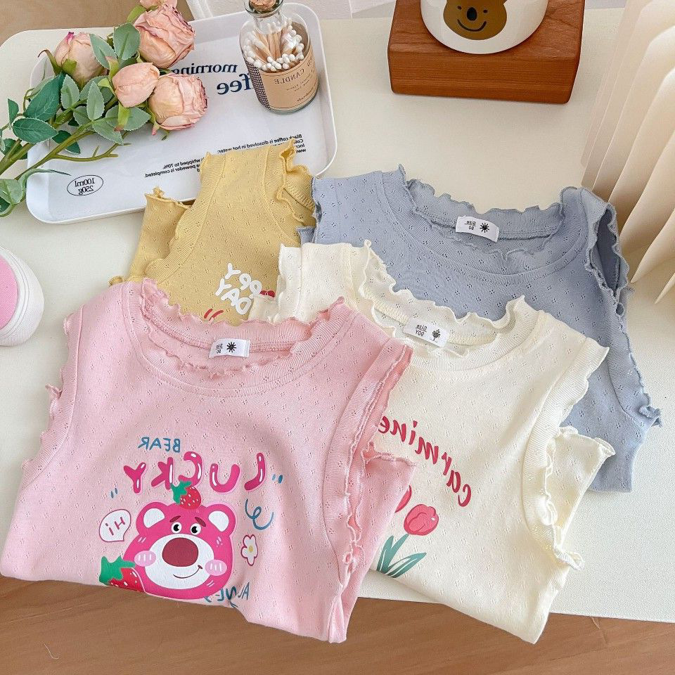 夏季女童背心T恤宝宝洋气儿童个性潮韩版可爱卡通木耳边外穿上衣