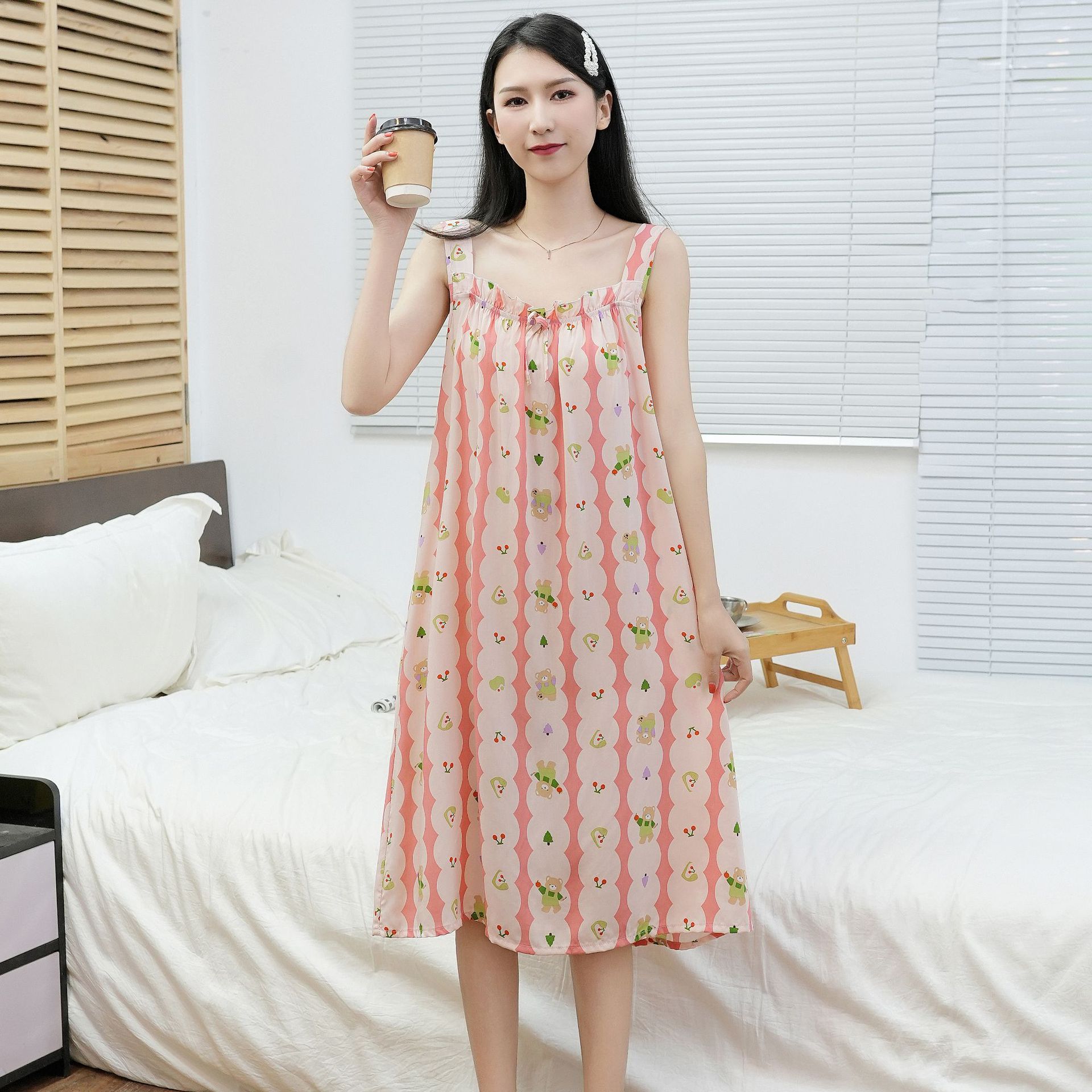 睡裙夏季女吊带棉绸小碎花睡衣夏天凉感人造棉少女可爱绵绸家居服
