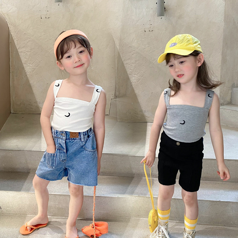 夏季女童背心吊带宝宝网红洋气儿童个性潮韩版刺绣一字领外穿上衣