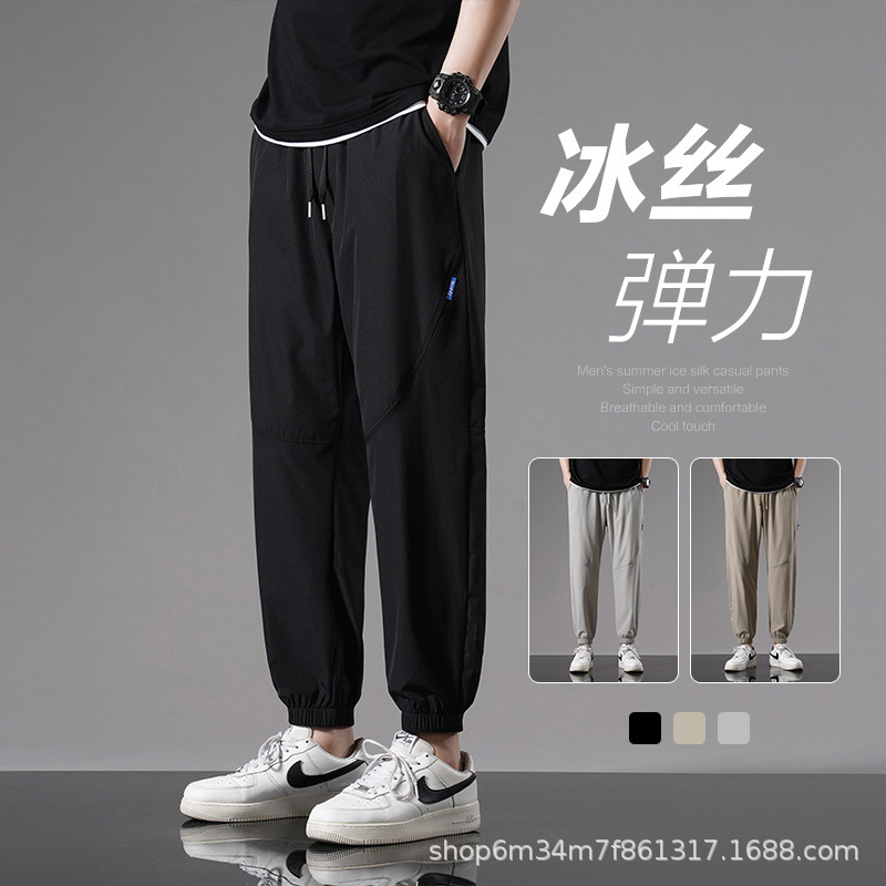 冰丝裤男新款夏运动男裤薄款抽绳束脚百搭潮流九分休闲长裤男