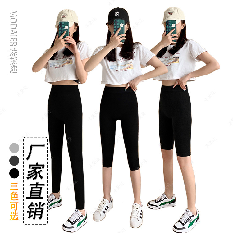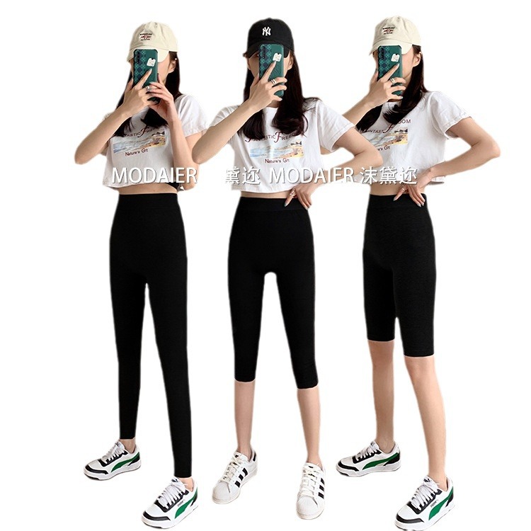 莫代尔打底裤女薄款外穿九分裤春夏季五七分裤大码高腰显瘦小脚裤