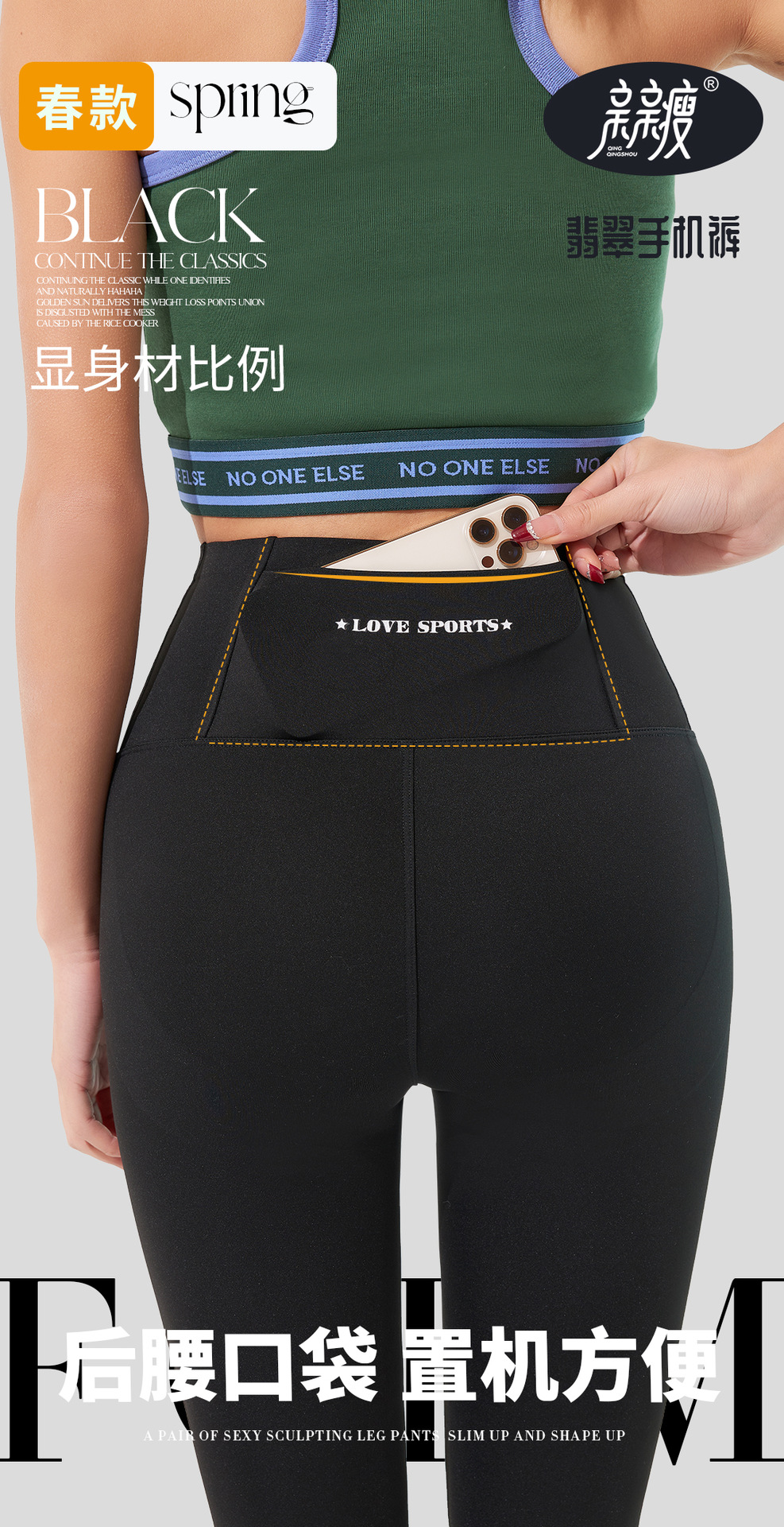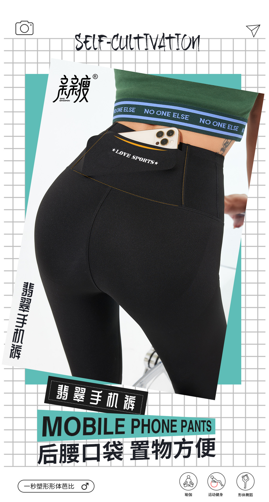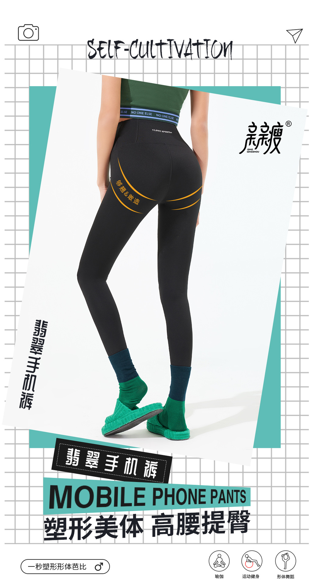 翡翠手机裤 春秋新款女士芭比裤收腹提臀瑜伽裤鲨鱼裤外穿打底裤