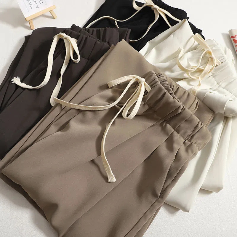 高级感窄版冰丝西装阔腿裤女春夏宽松垂感拖地直筒大码休闲裤秋冬
