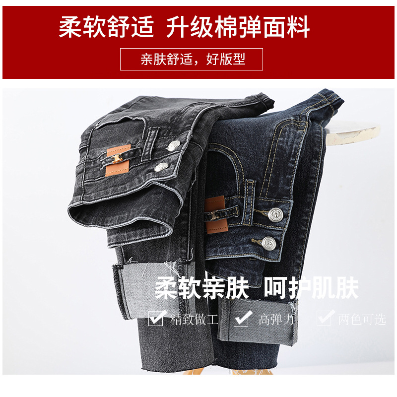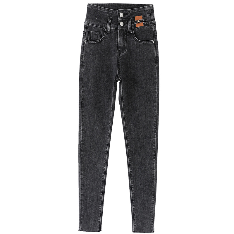 高腰双排扣小脚牛仔裤女秋季新款高弹力修身显瘦chic铅笔裤子