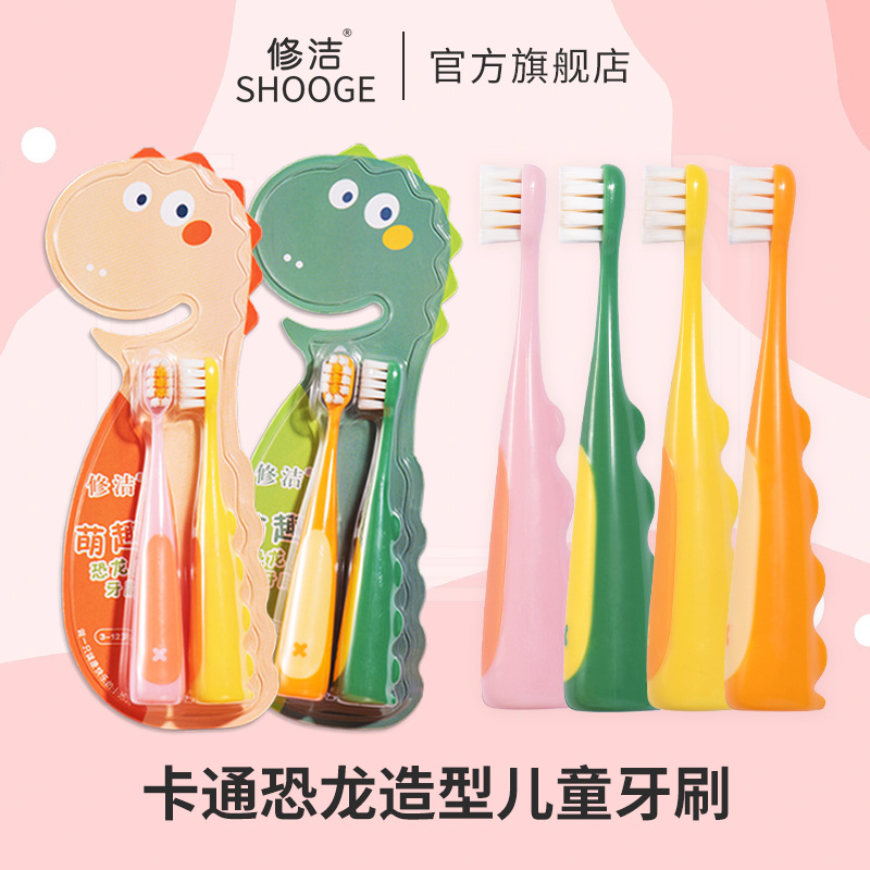 修洁儿童牙刷2-6-12岁宝宝卡通小恐龙胖手柄手动软毛高级牙刷